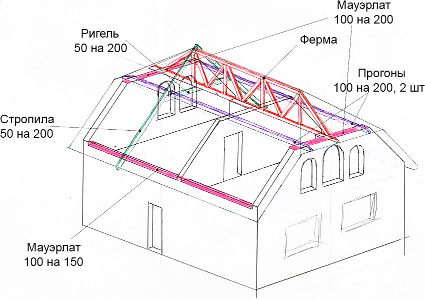 - Mauerlat - rasuk sokongan yang lebih rendah untuk kasau;