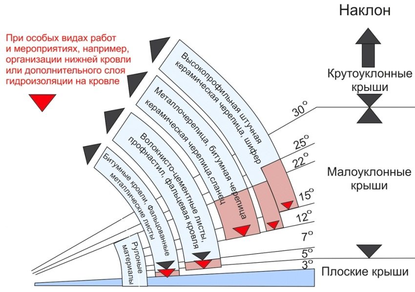 Di samping itu, ketika memilih sudut atap pinggul, seseorang harus mengambil kira bahan penutup bumbung, yang masing-masing jenisnya mempunyai batasan pada lereng lereng:
