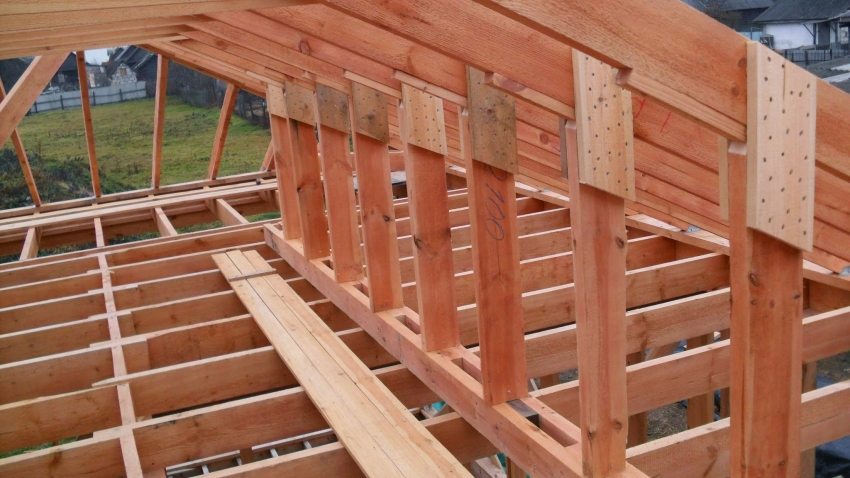 - rak diletakkan di atas papan pengetat, yang akan menjadi sokongan untuk kaki kasau pertengahan;