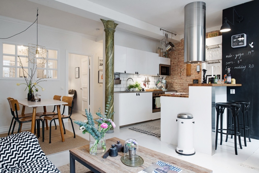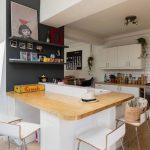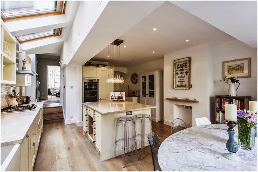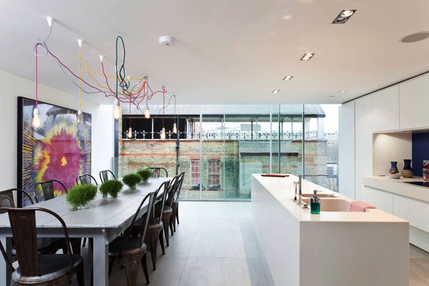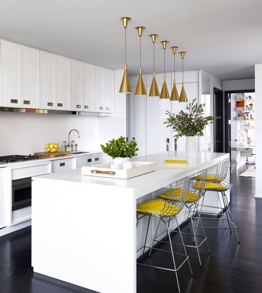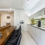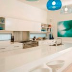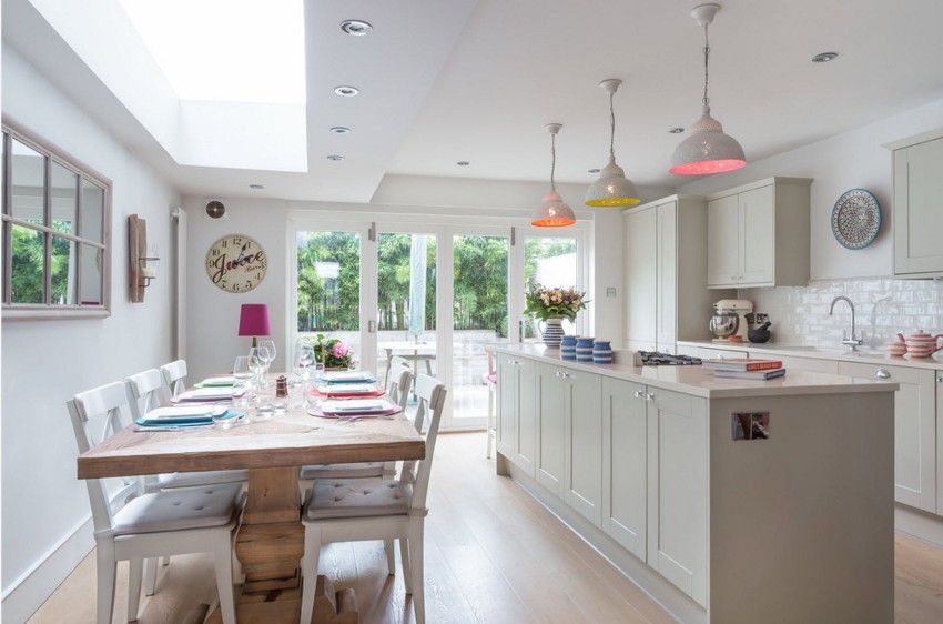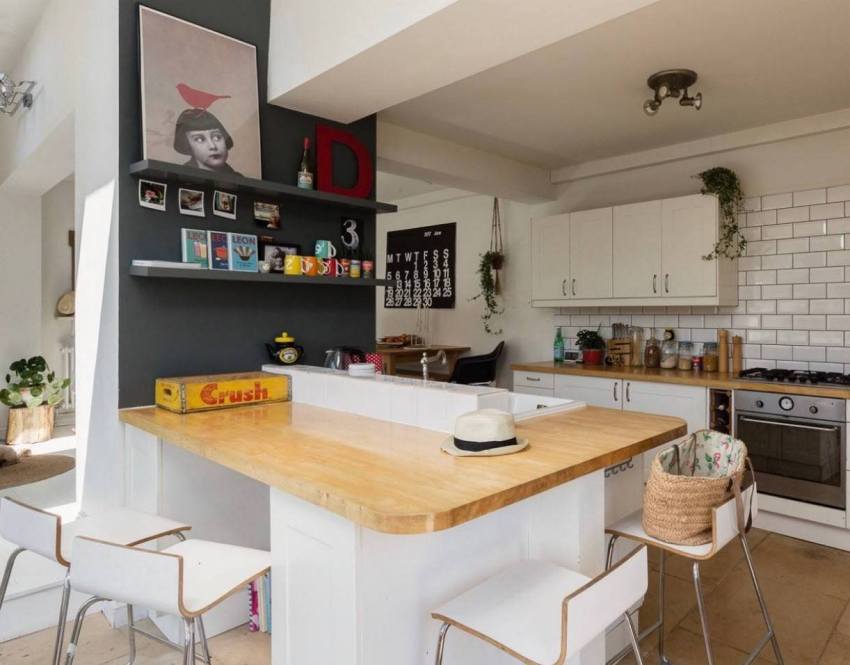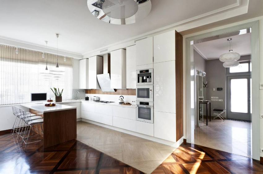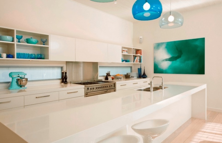 Gabungan gloss putih dapur dengan elemen hiasan yang lain