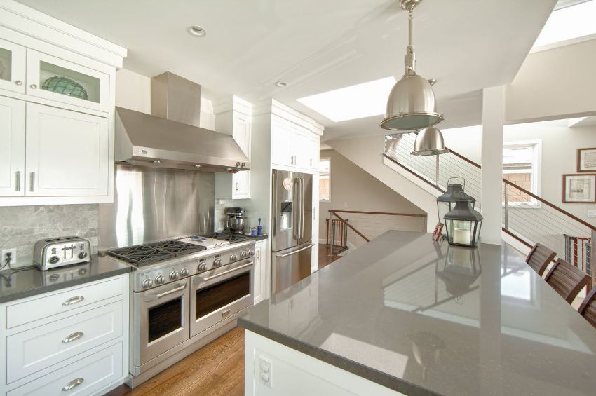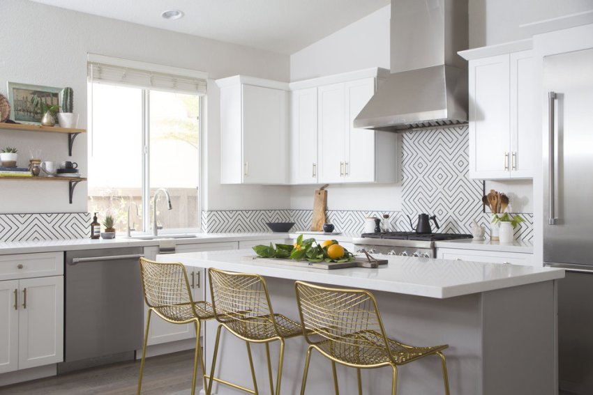 Dapur putih yang tiada tandingan dan bergaya: gambar reka bentuk semasa