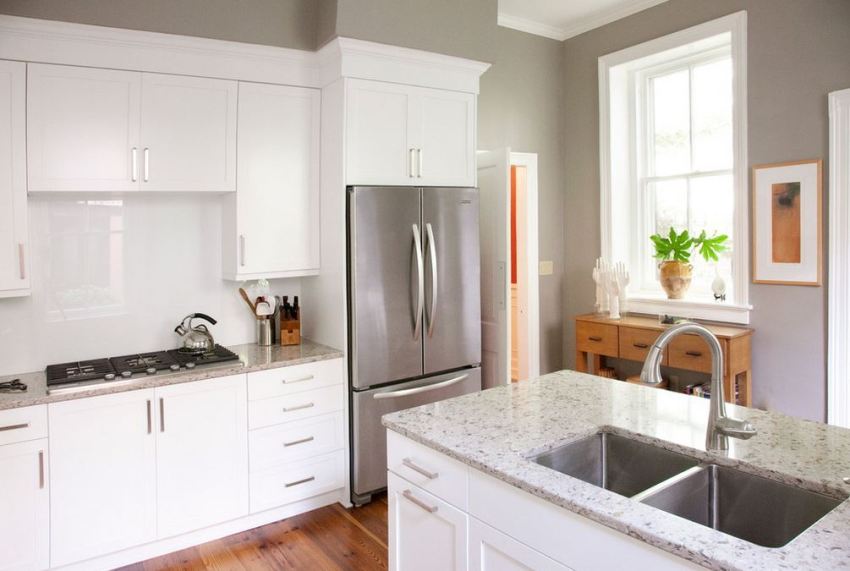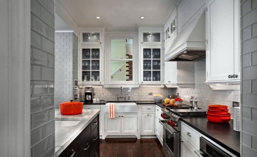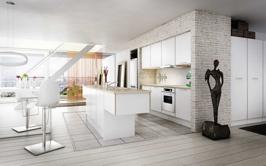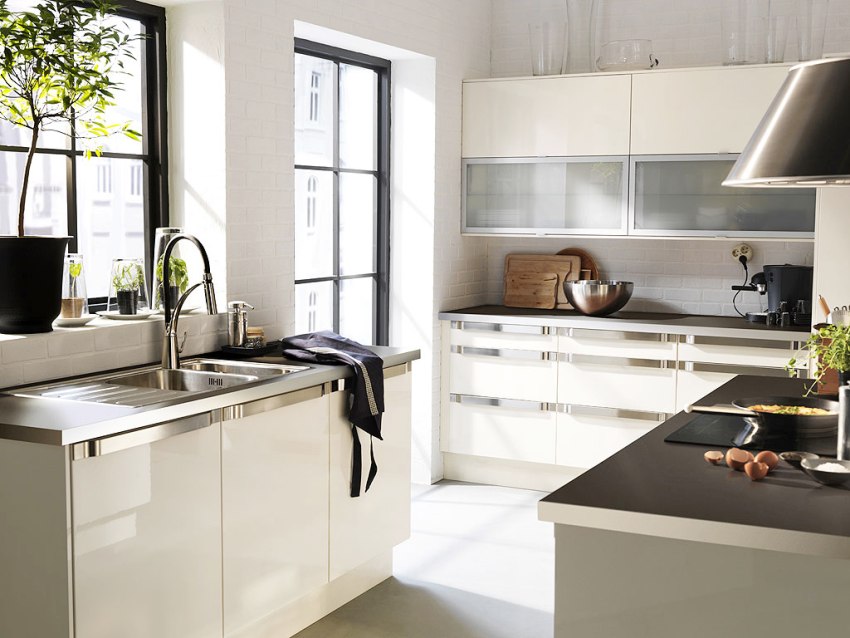 Kemunculan bahan bangunan dan penamat baru juga menyumbang kepada penciptaan reka bentuk dapur putih yang asli. Foto-foto yang muncul di Internet baru-baru ini menunjukkan pelbagai.
