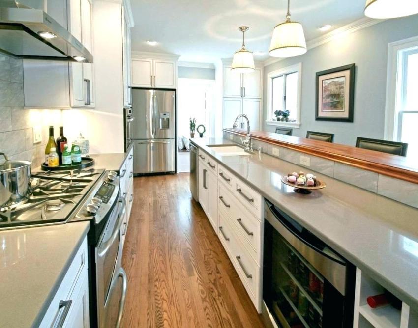 Kemasan tradisional yang digabungkan dengan perabot berkilat jarang berlaku. Selalunya, tirai digunakan sebagai ganti langsir, dan jubin seramik hanya digunakan di lantai, kecuali tiruan dinding bata pada apron menggunakan jubin.