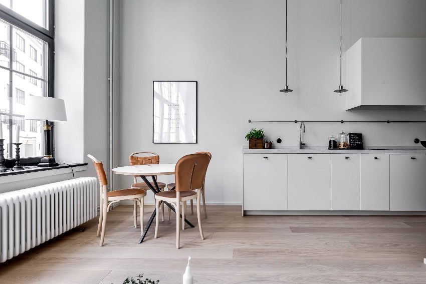 Nasihat berguna! Dapur putih boleh dihiasi dengan gaya yang berbeza. Selalunya, pereka memilih moden, scandi, provence, high-tech, loft, minimalism, country, provence dan classicism. Julat ini dimungkinkan kerana fleksibiliti warna putih, serta kemampuannya untuk menyelaraskan dengan warna dan warna lain.