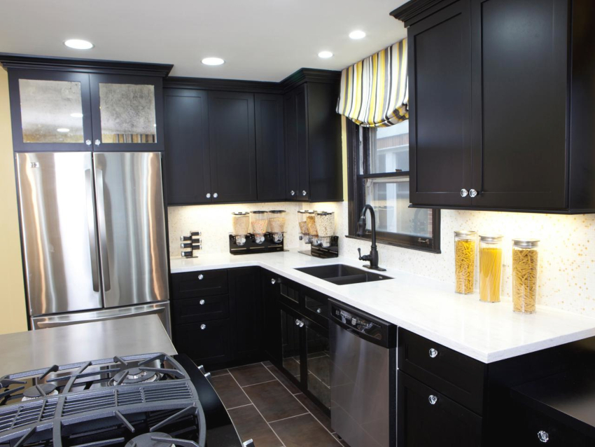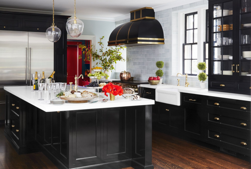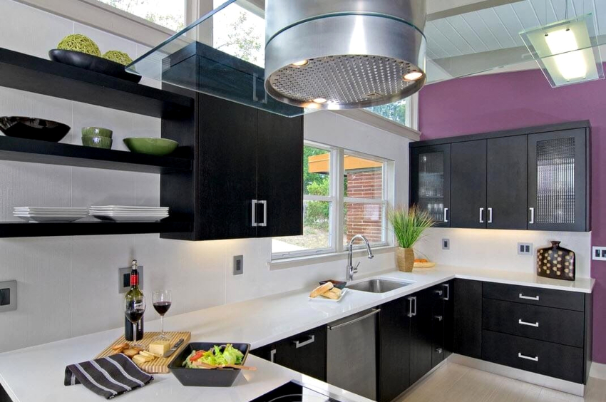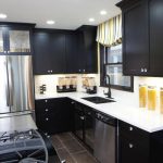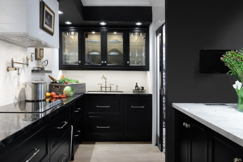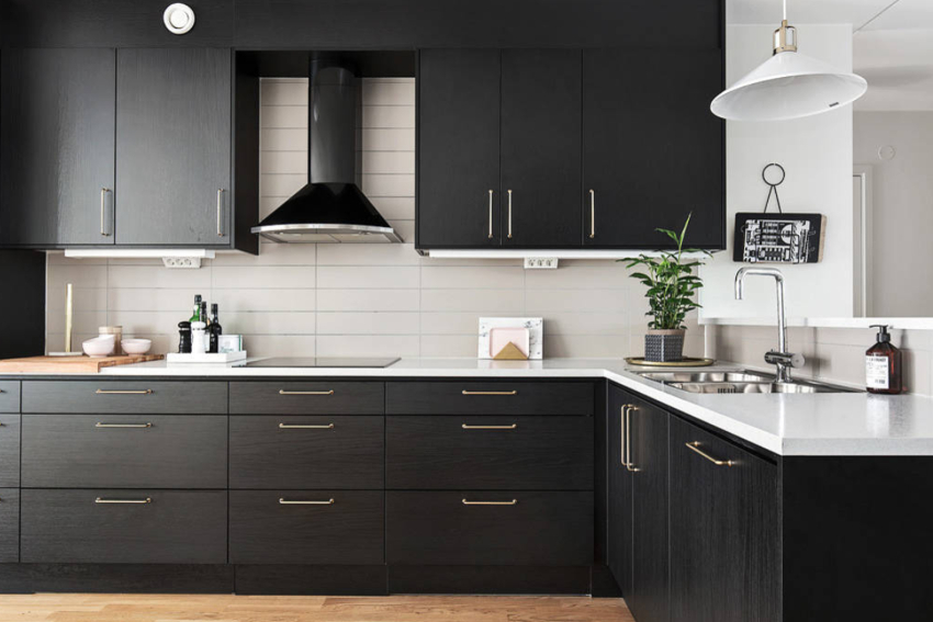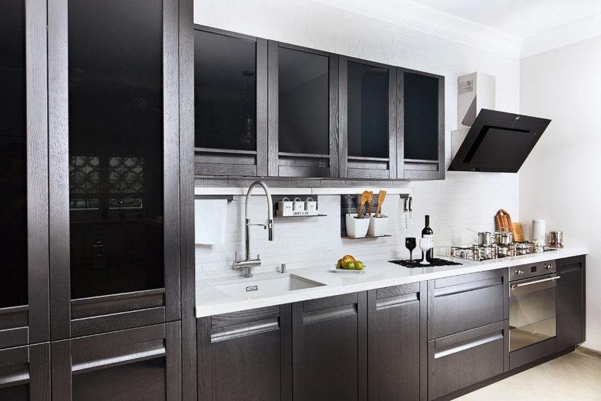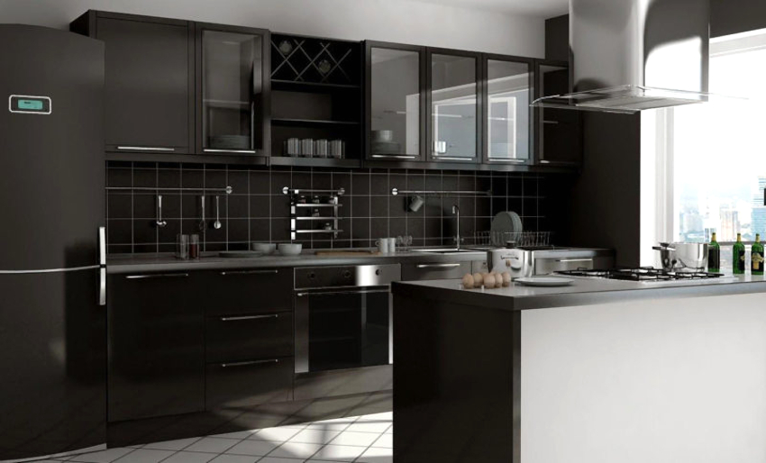 - Warna hitam menyumbang kepada pengurangan visual ruang dapur.