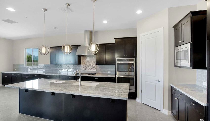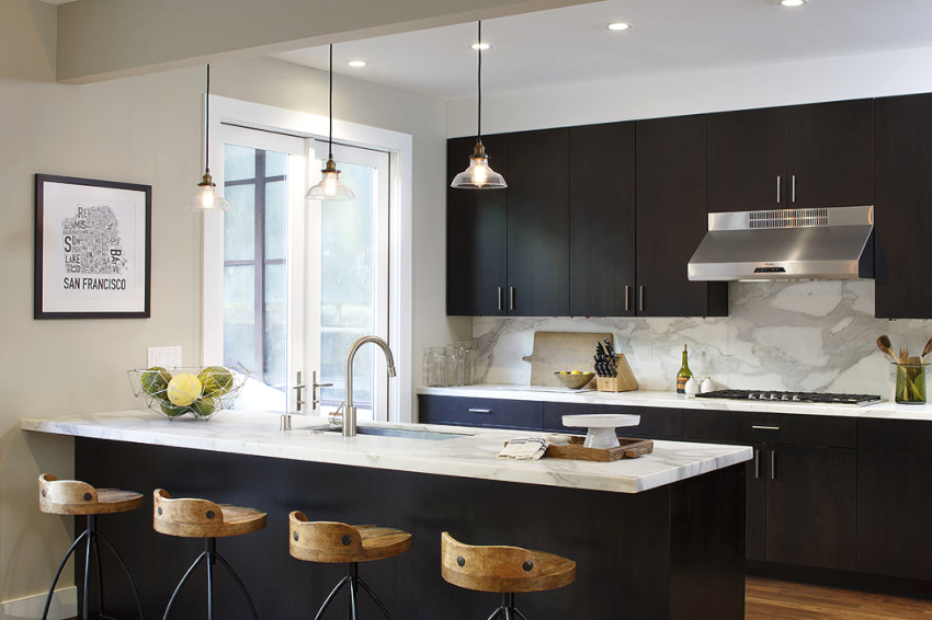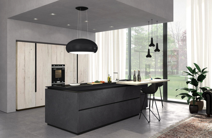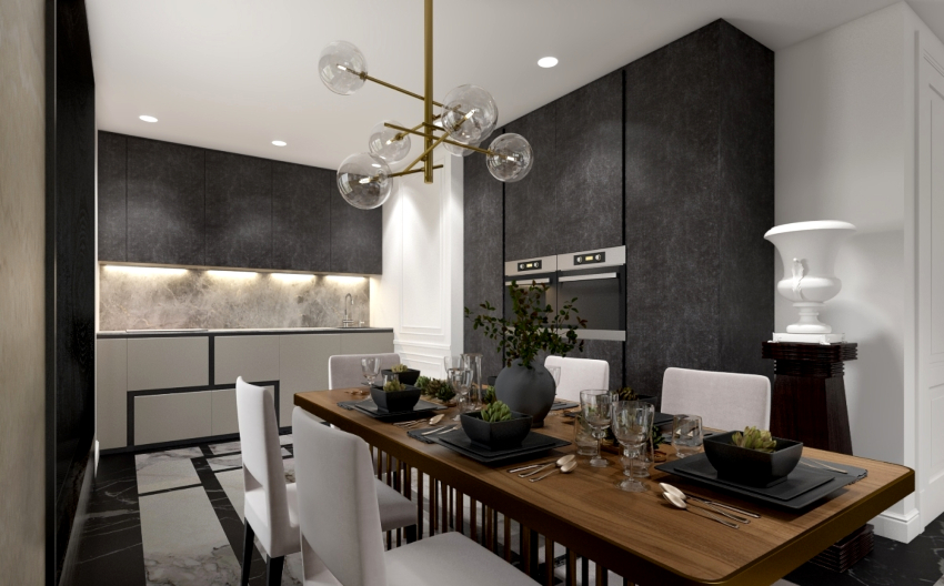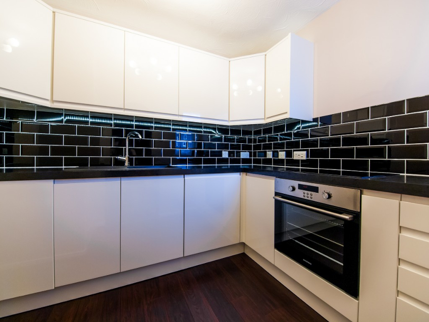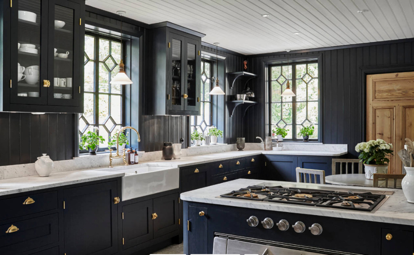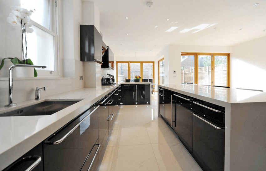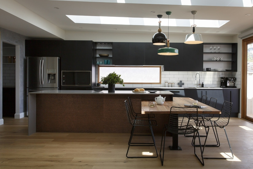- Warna hitam menyumbang kepada pengurangan visual ruang dapur.