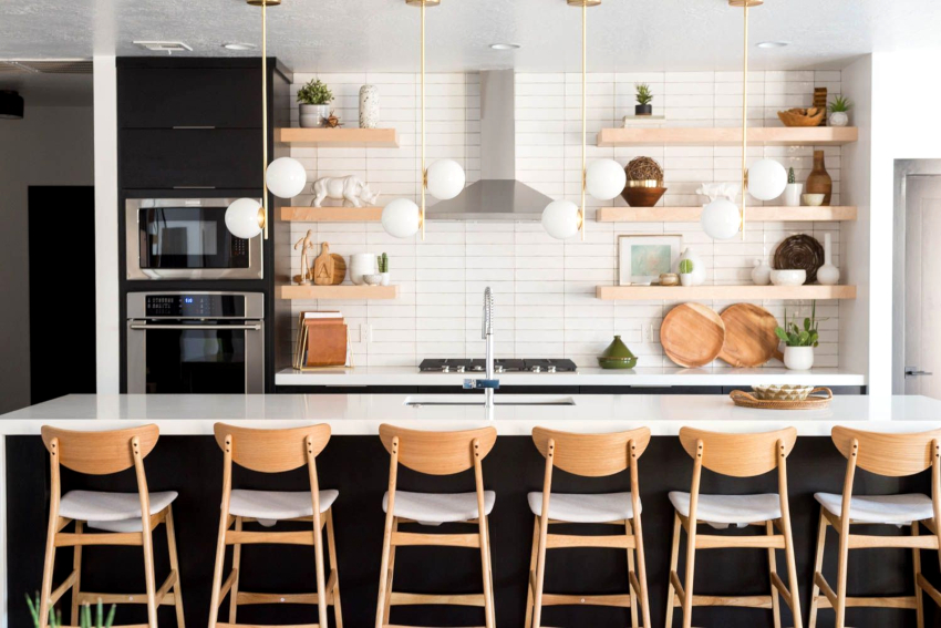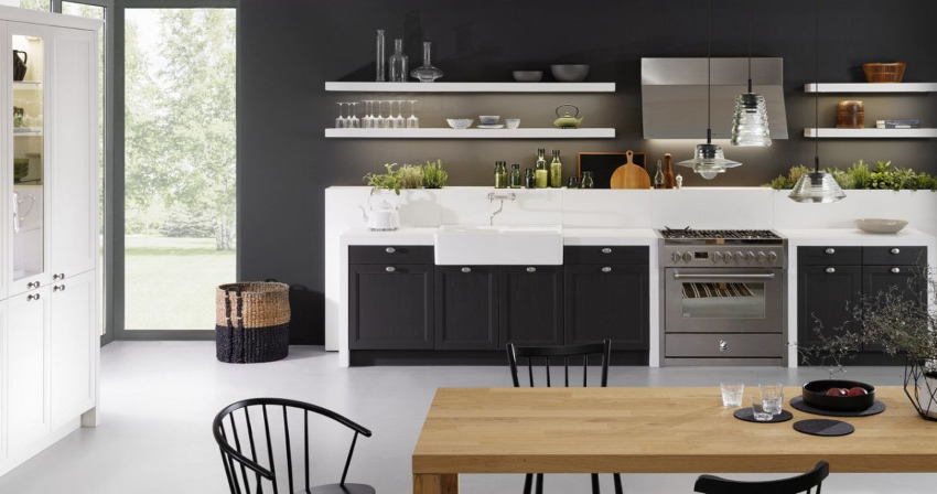 Dapur hitam dan putih adalah tempat pembiakan yang sempurna untuk bereksperimen untuk mewujudkan ruang dalaman yang paling luar biasa