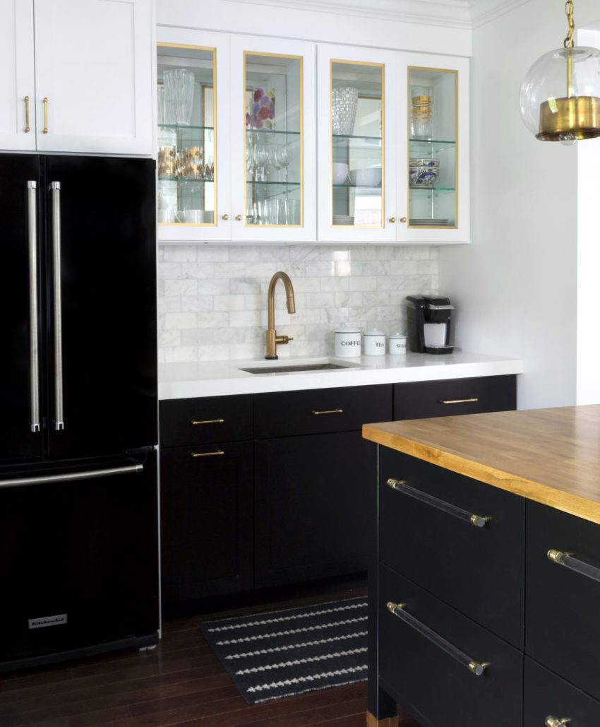 Bahagian bawah dapur hitam - bahagian atas putih: contoh foto reka bentuk yang harmoni