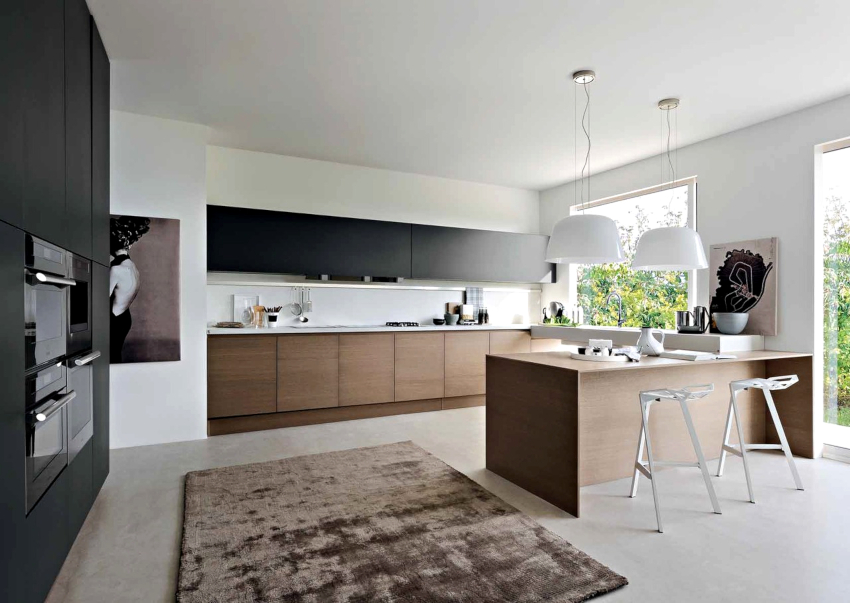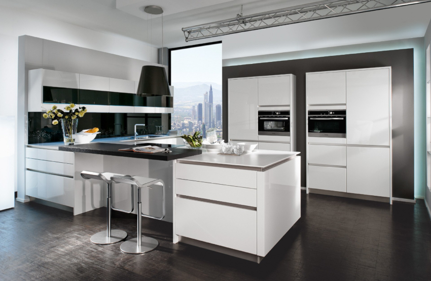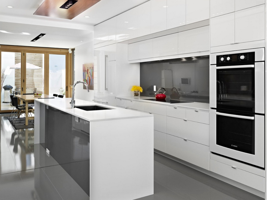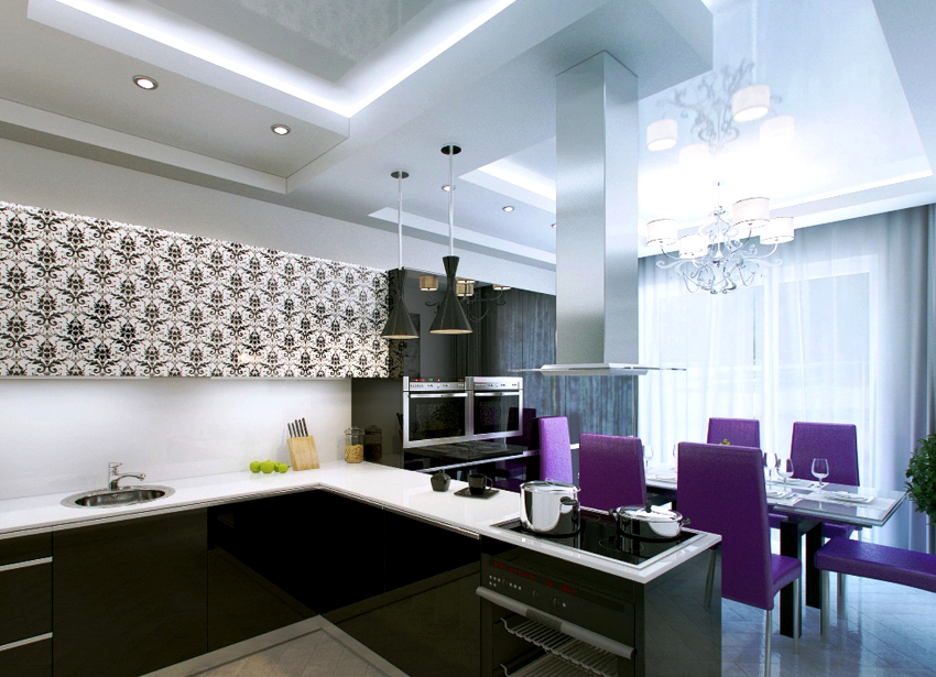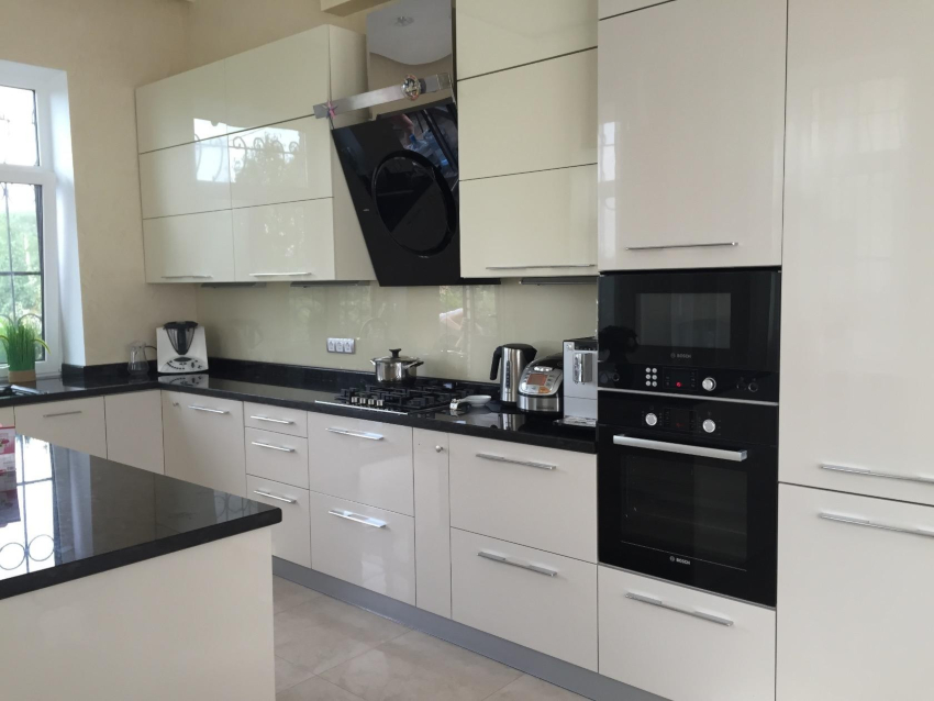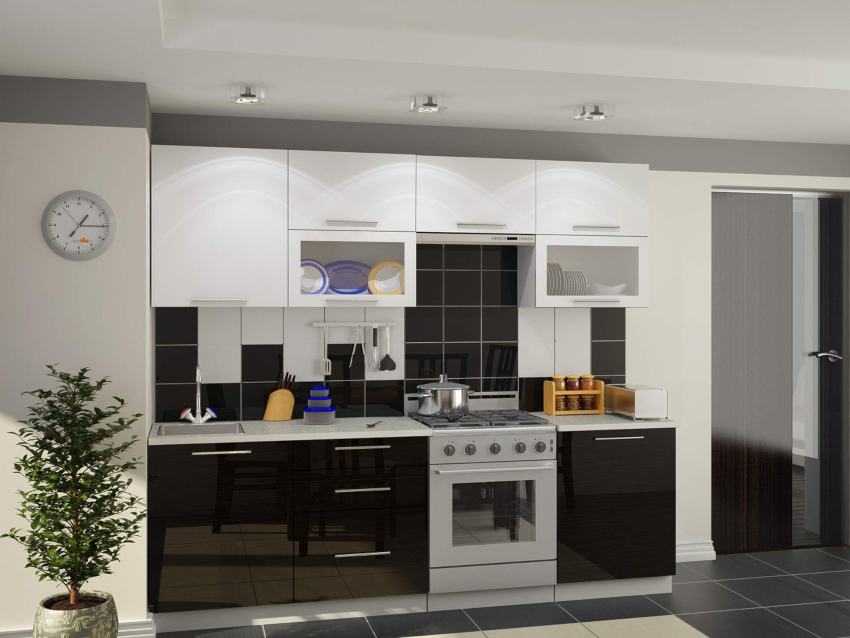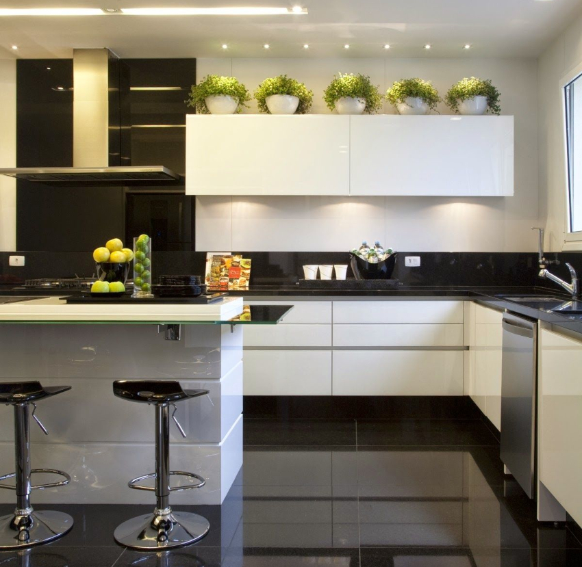 Dalam pelbagai ruang dalaman bergaya yang dihiasi dengan warna yang kontras, dapur berkilat hitam dan putih, di mana keanggunan digabungkan dengan keindahan semula jadi, layak mendapat telapak tangan, yang membolehkan anda menerapkan sebarang penyelesaian gaya, sama ada klasik, retro, minimalis atau art deco.