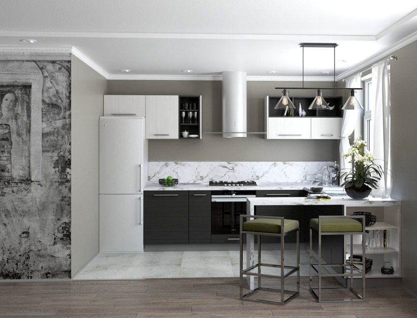 Cara memilih perabot dapur yang tepat dalam warna hitam dan putih: foto model asal