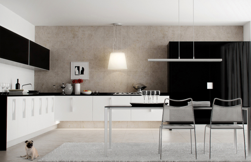 Dapur hitam putih: garis panduan penting untuk membuat penampilan yang lengkap