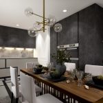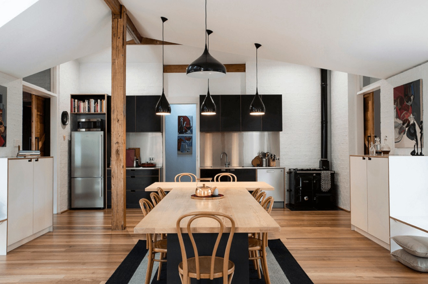 Susun atur sudut adalah penjimat ruang terbaik, membuka kemungkinan mewujudkan ruang makan yang lebih luas