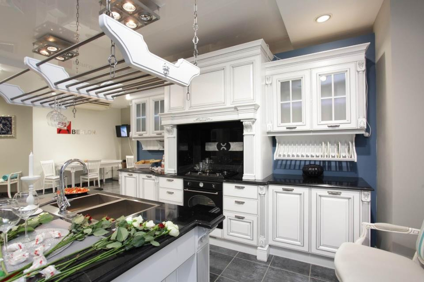 Dapur putih: gambar pilihan reka bentuk klasik dan moden