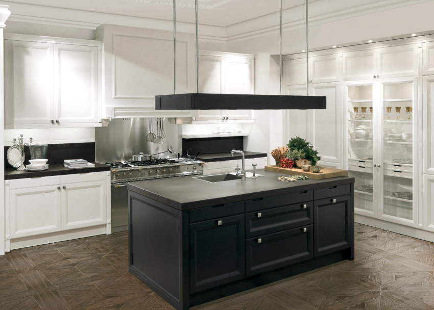 Dapur klasik dalam warna hitam dan putih adalah kehadiran kedua-dua warna yang seimbang, yang akhirnya membentuk kombinasi sempurna Yin dan Yang dengan warna hitam berwarna putih dan sebaliknya - putih hitam. Pilihan reka bentuk ini dicirikan bukan hanya oleh kecantikan, tetapi juga oleh nada falsafah.