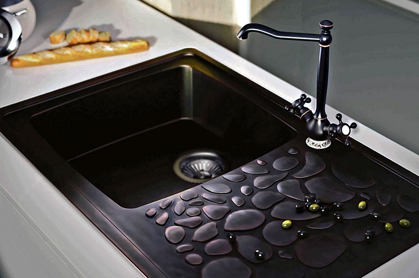 Tambahan, sink dapur hitam kurang kelihatan kerana kecacatan dan kotoran.Merawatnya jauh lebih mudah dengan menggunakan kaedah improvisasi biasa. Pada masa yang sama, perabot ini bukan sahaja memenuhi fungsi praktikal, tetapi juga dapat menjadi tumpuan kawasan kerja. Oleh itu, semasa memilih sink, anda mesti memperhatikan bahan dan bentuk produk.