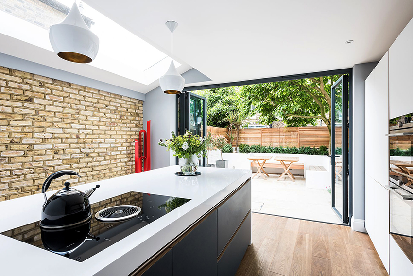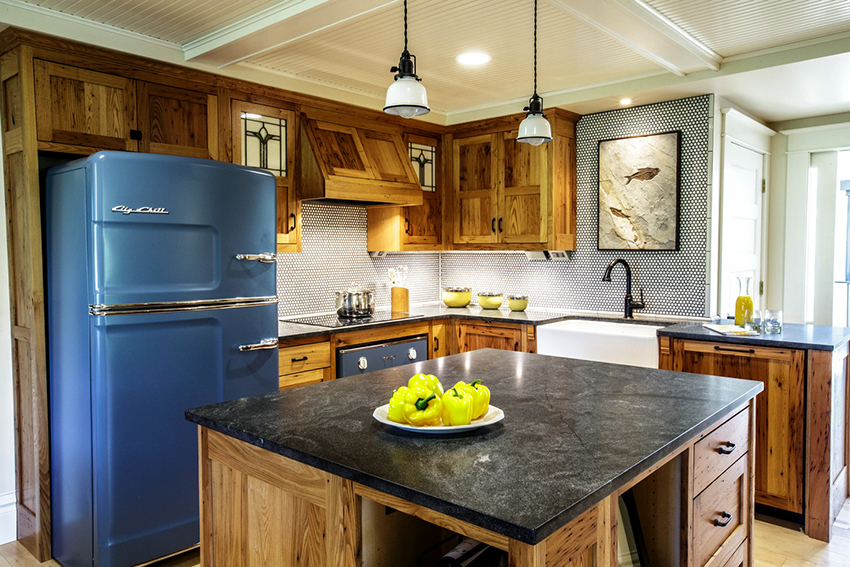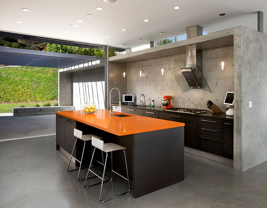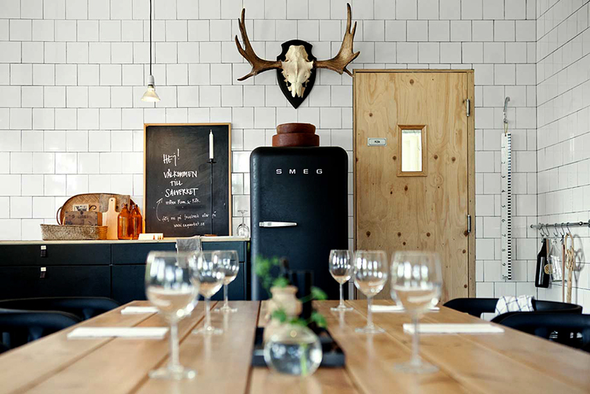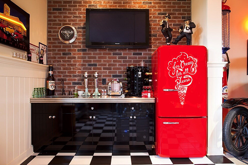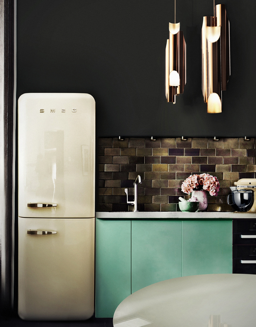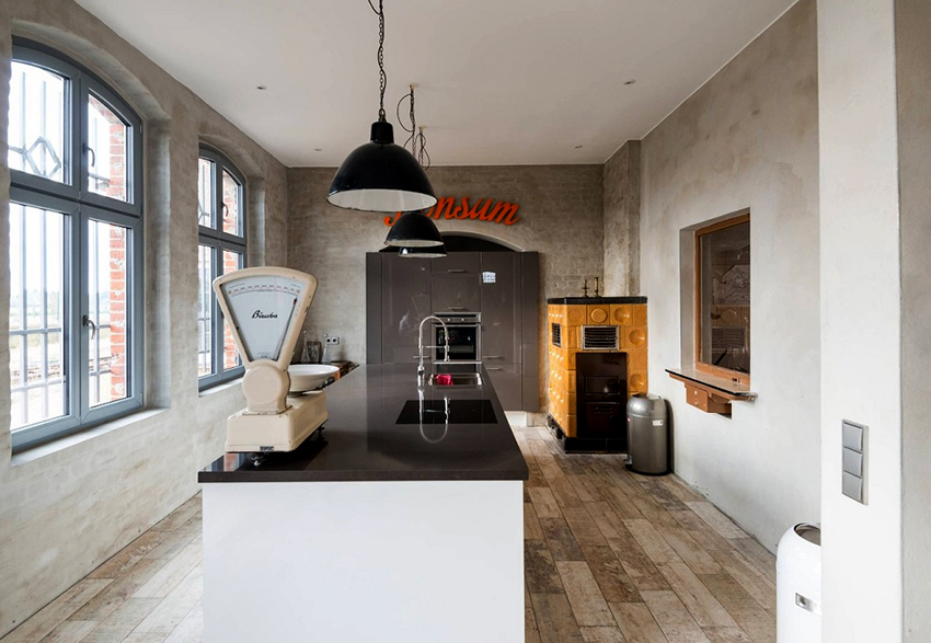 - Bahagian dalam dapur hitam adalah kontras warna, yang menimbulkan misteri dan semacam drama.