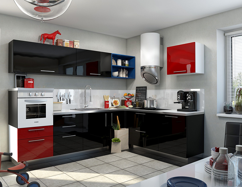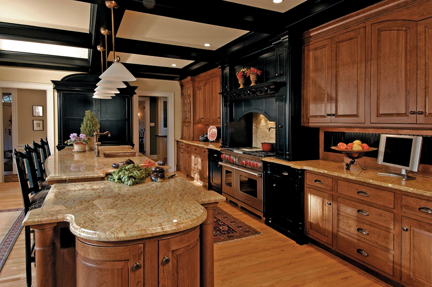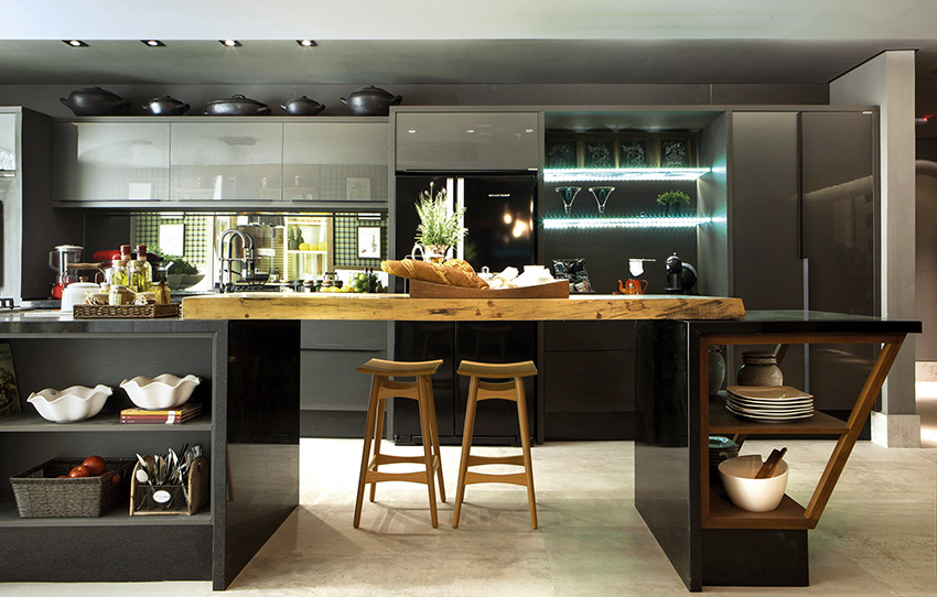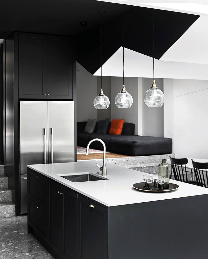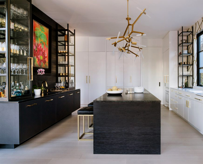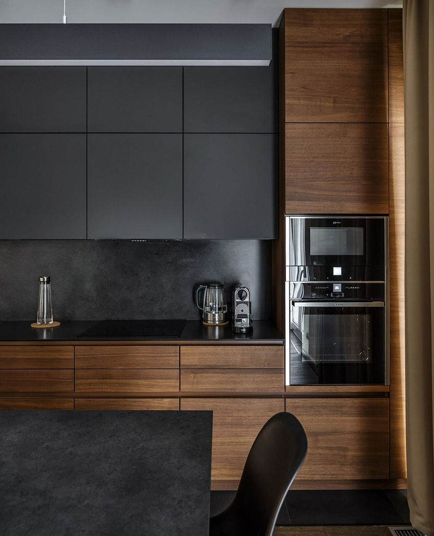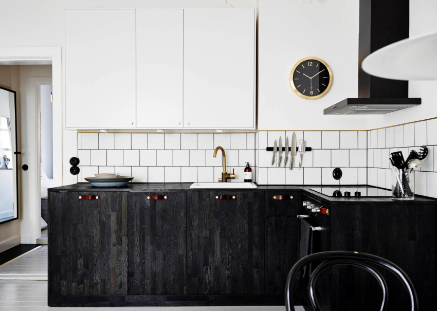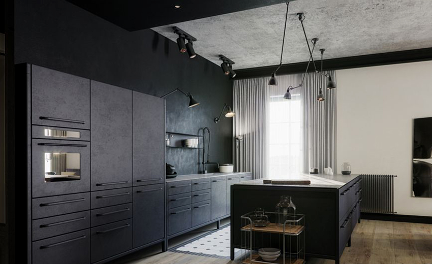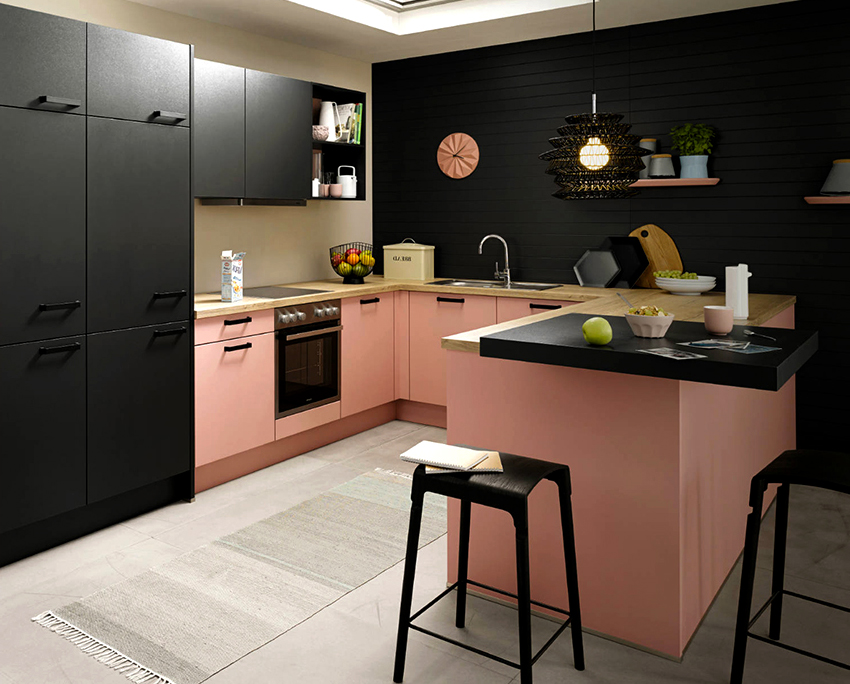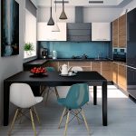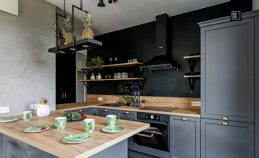 Reka bentuk dapur hitam digabungkan dengan warna lain