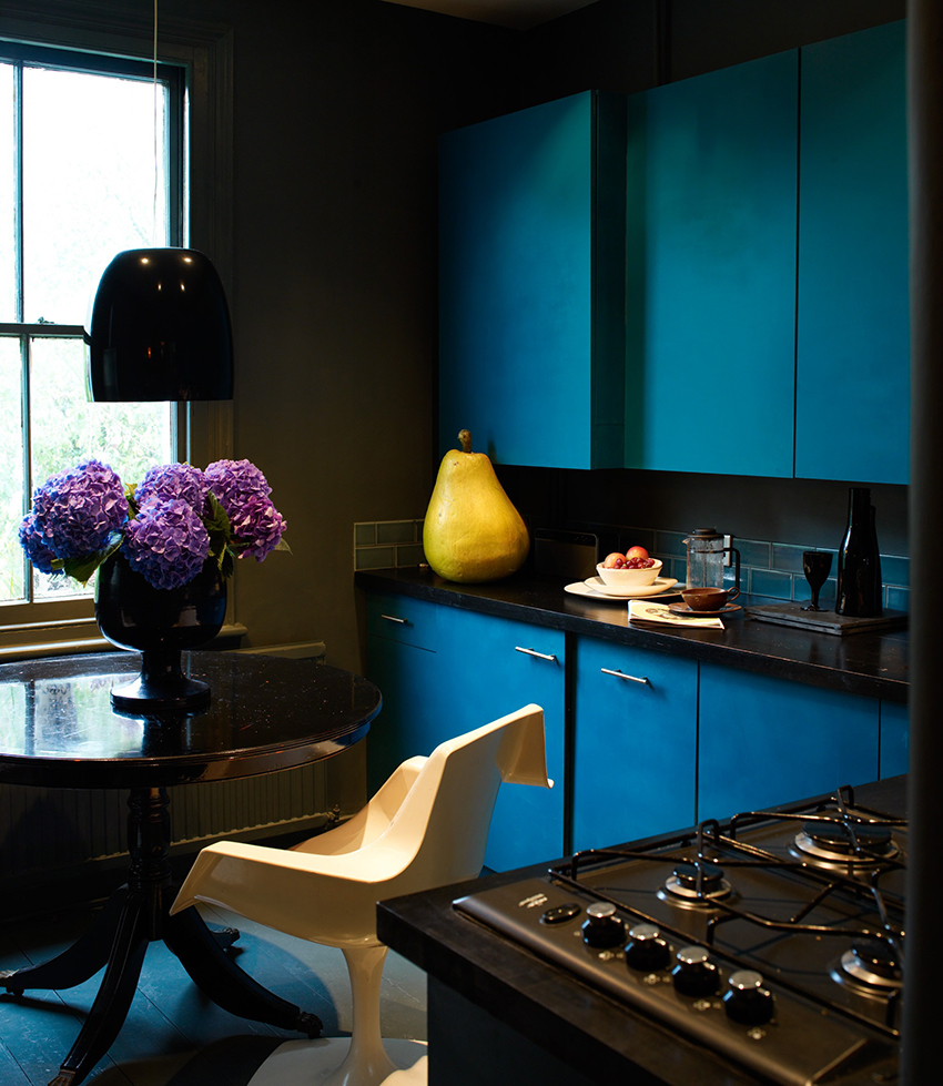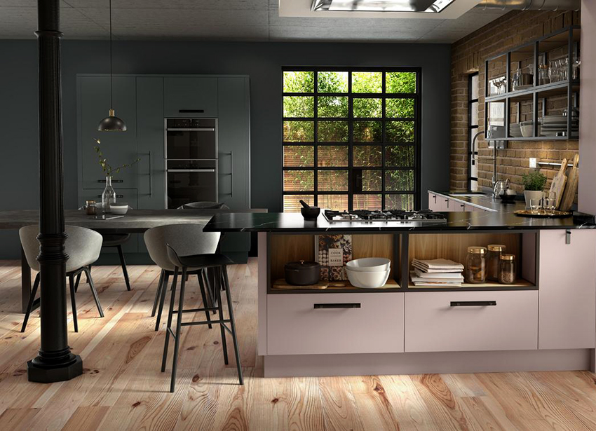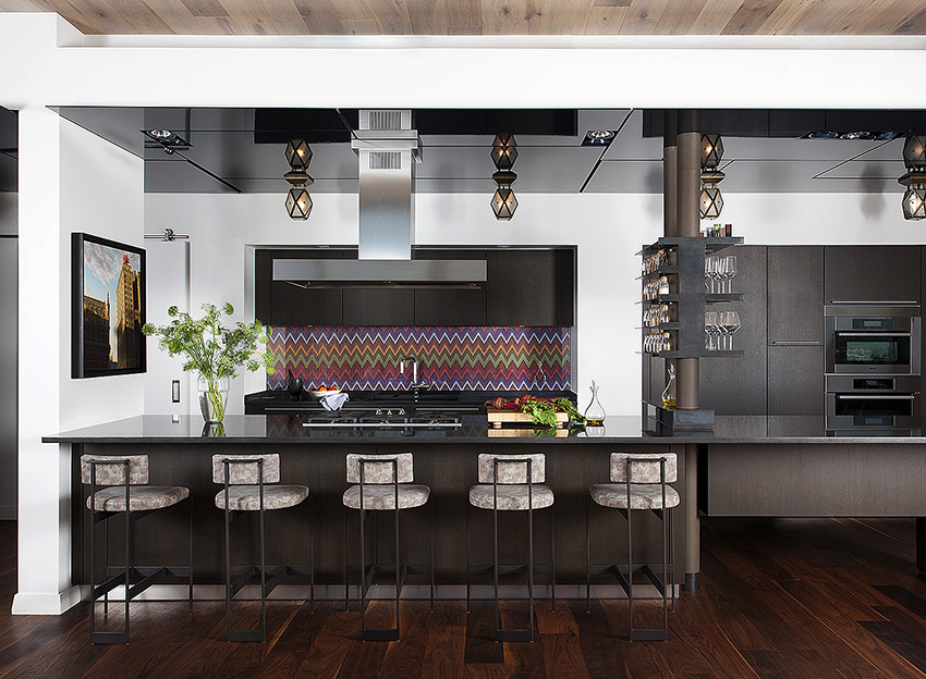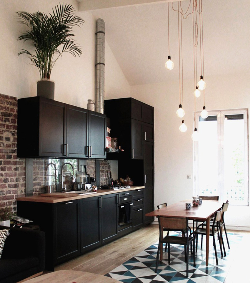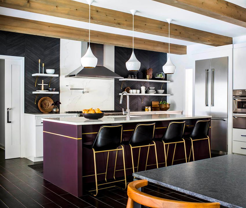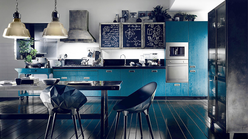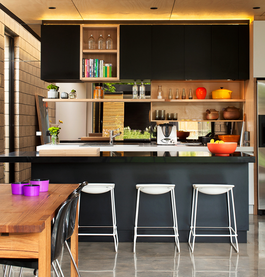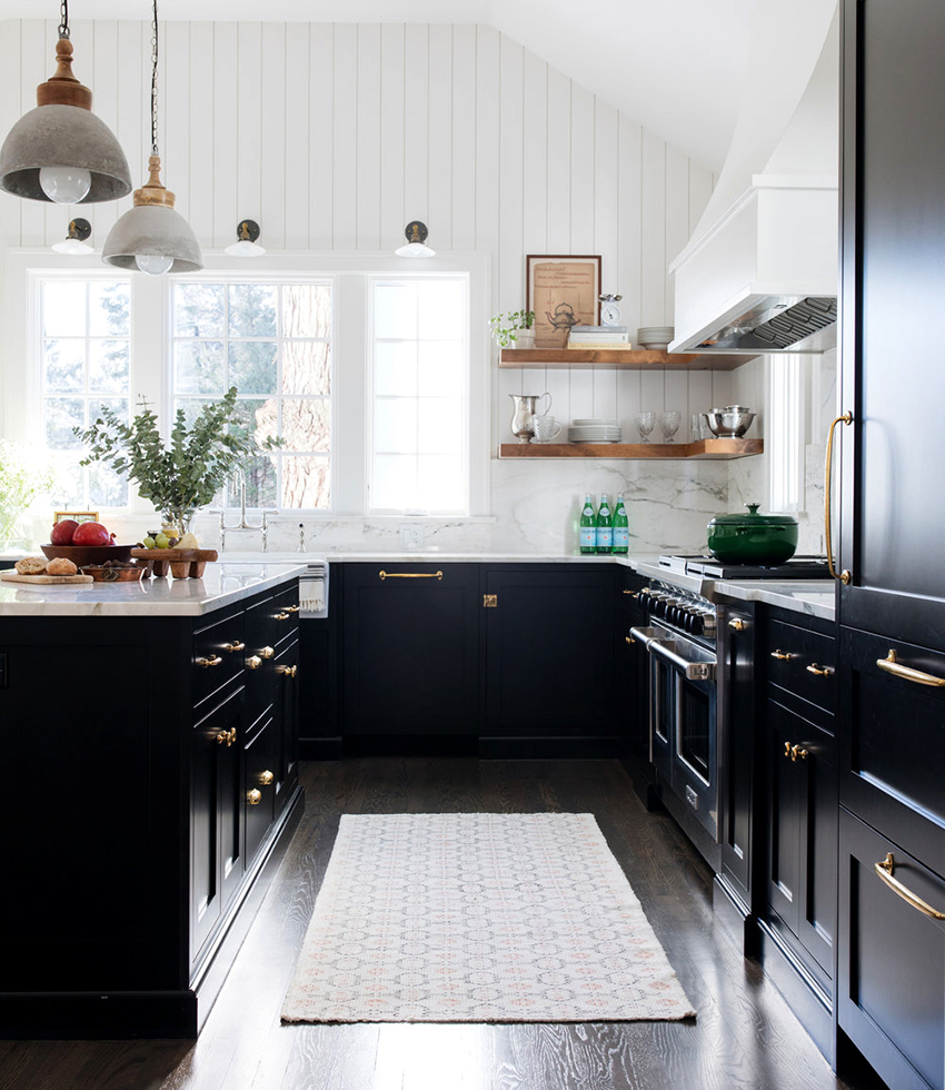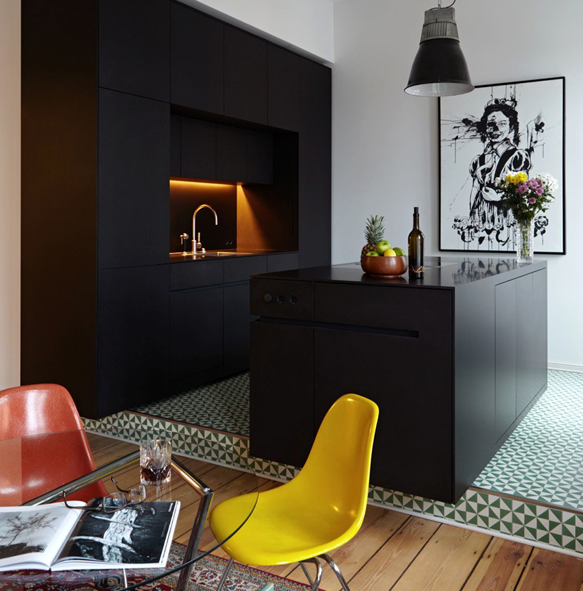 Reka bentuk dapur hitam digabungkan dengan warna lain