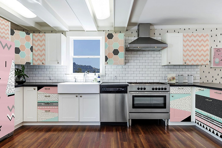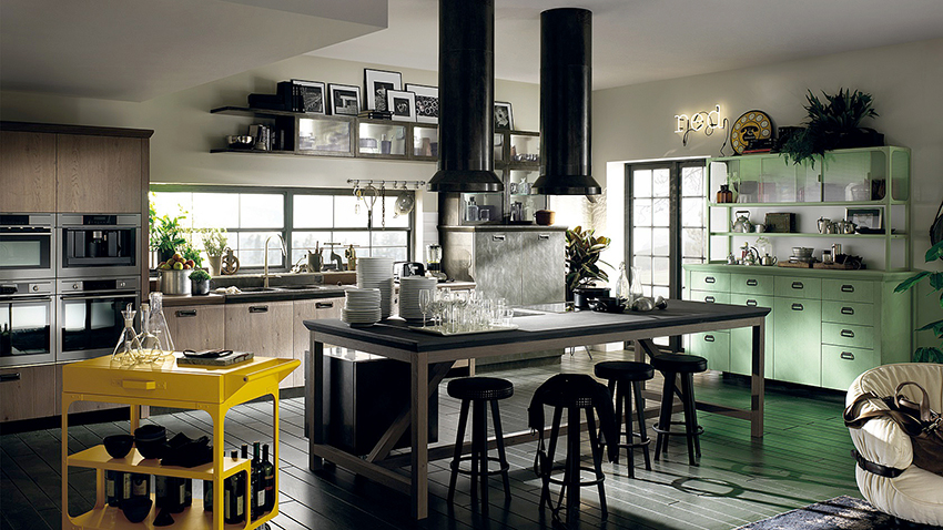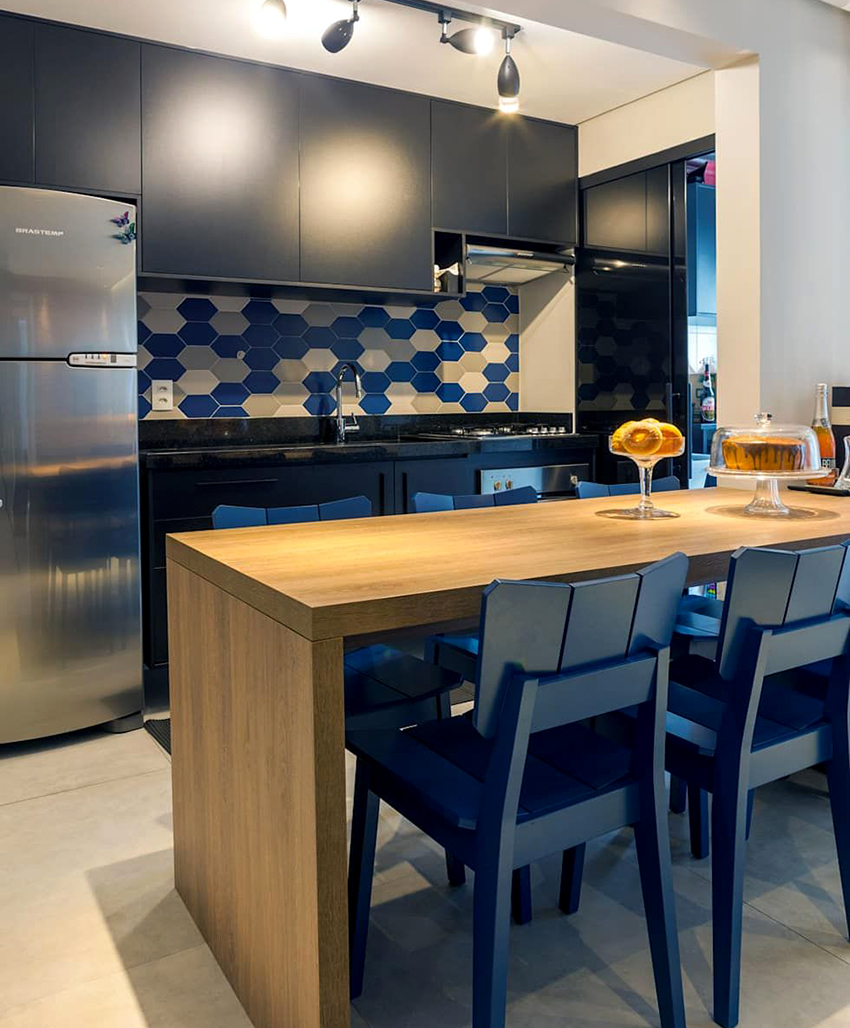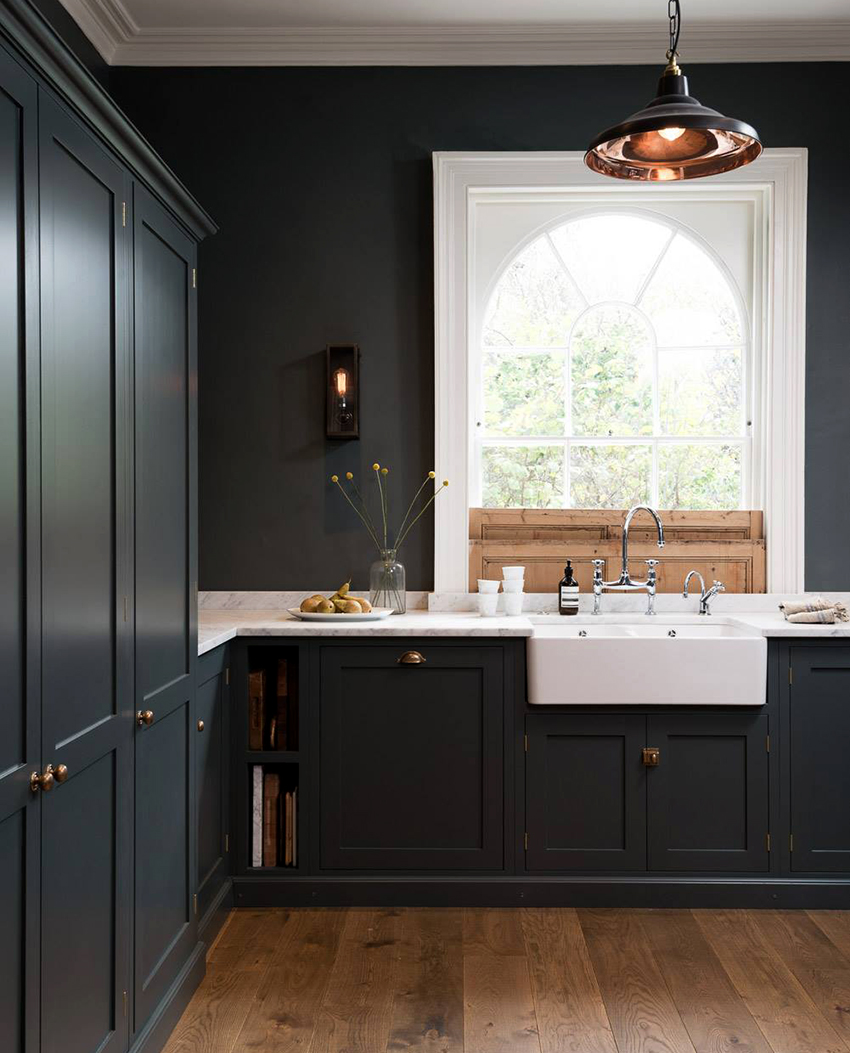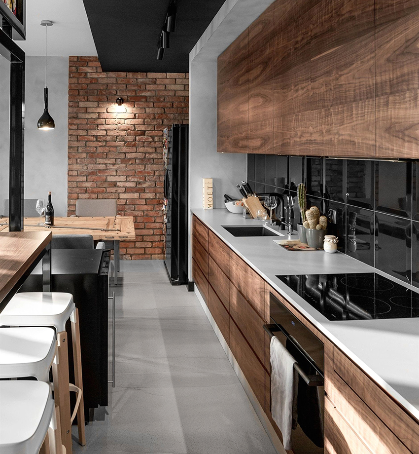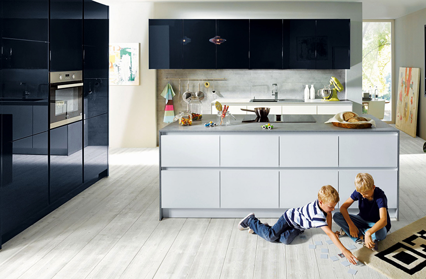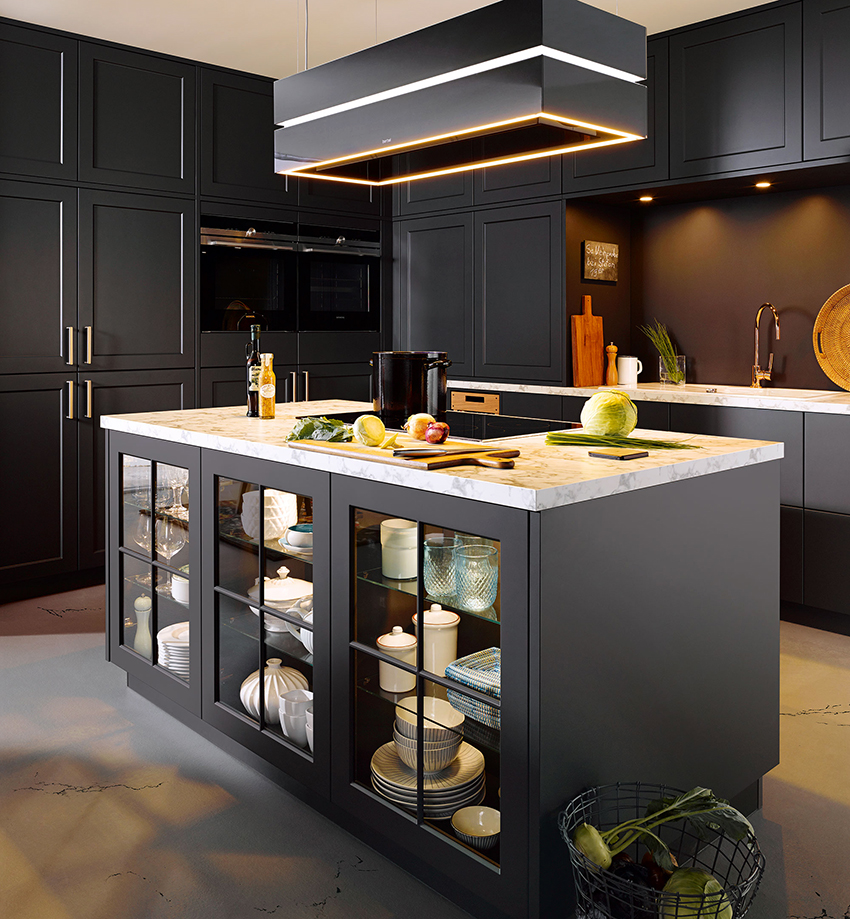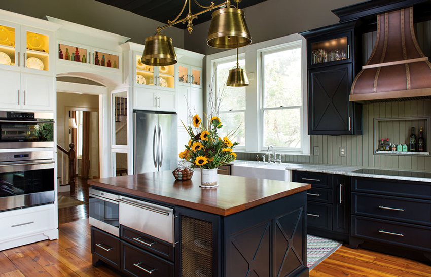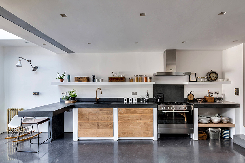 Reka bentuk dapur hitam digabungkan dengan warna lain
