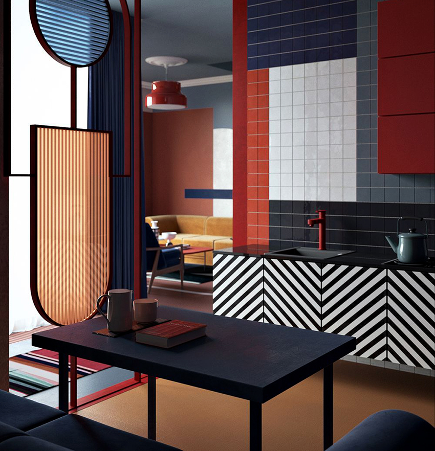 - buat ruang makan dengan warna ini atau susun kaunter bar;