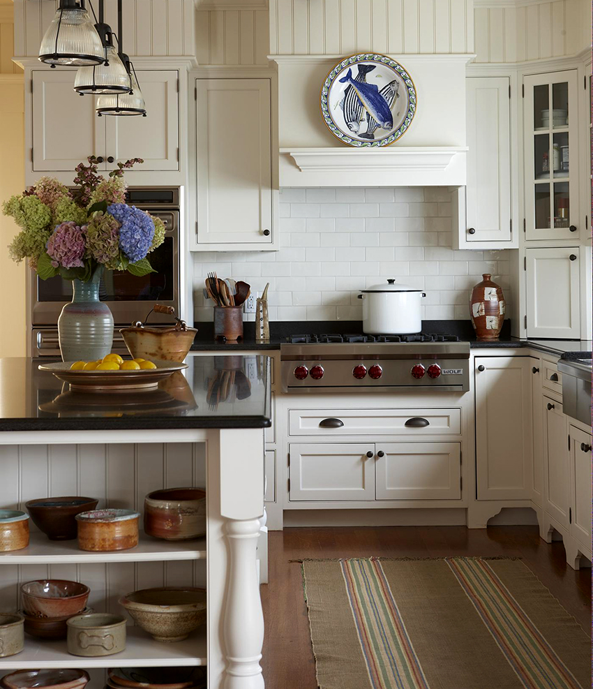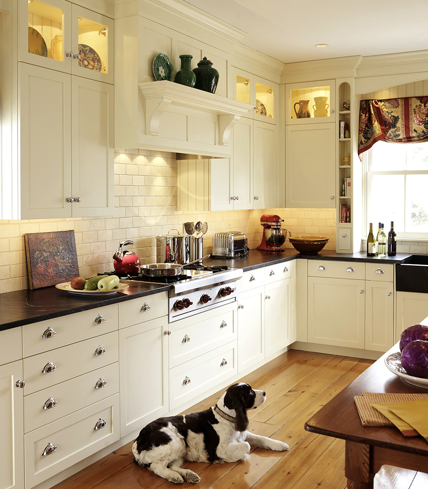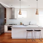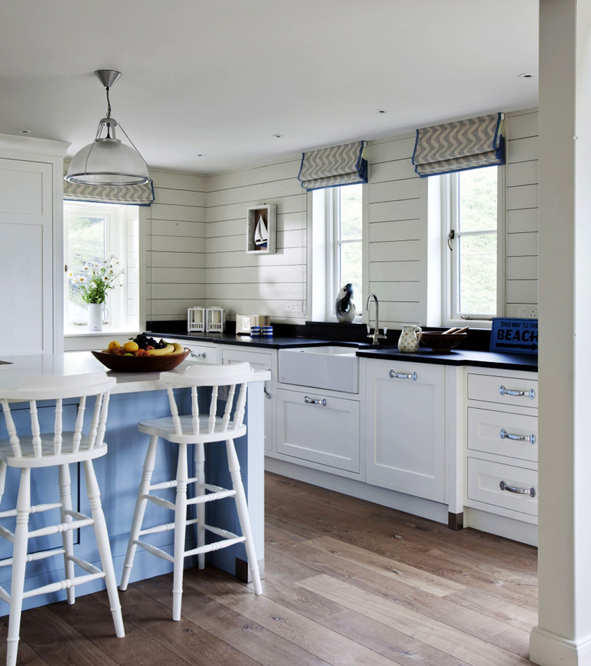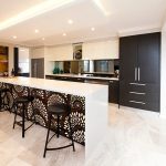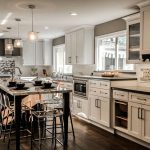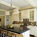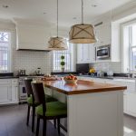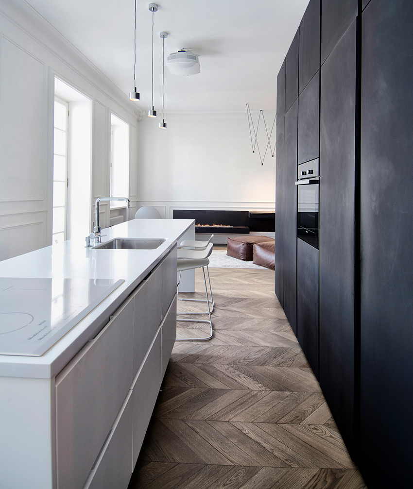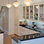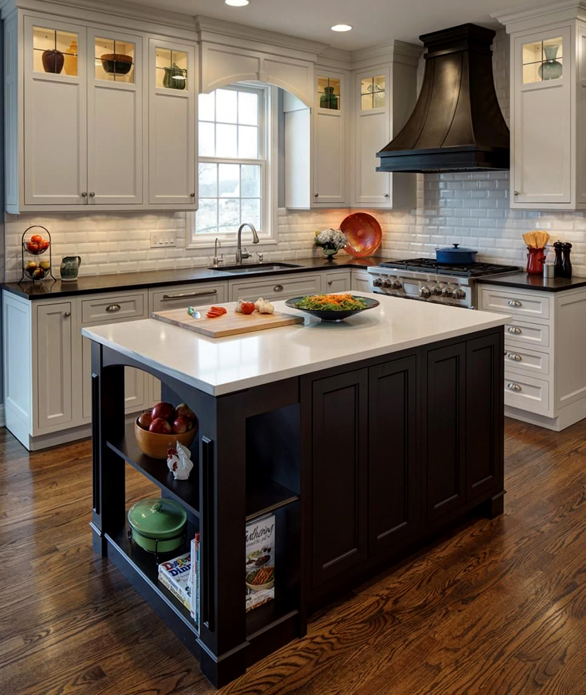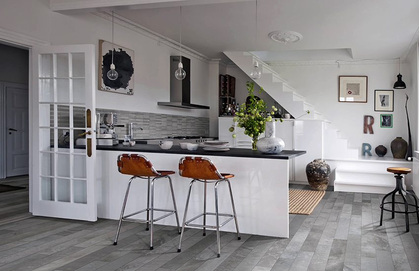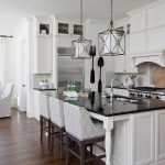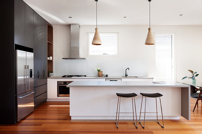 Gabungan dapur putih dan meja hitam kelihatan paling menguntungkan dalam gaya klasik moden