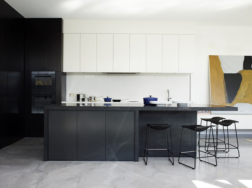 Ke hitam dapur kelihatan canggih dan ringkas, anda perlu mematuhi keseimbangan warna yang betul