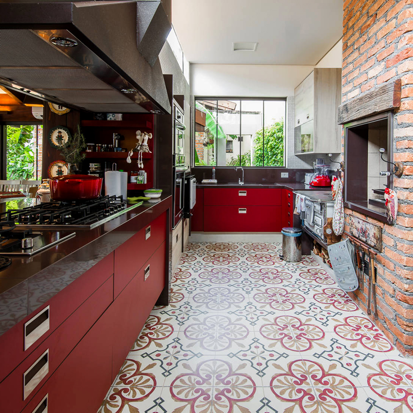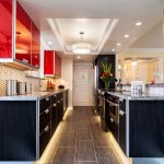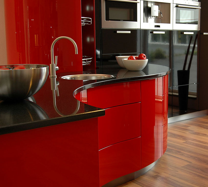 Dalam reka bentuk dapur merah dan hitam, fotonya dapat dijumpai dengan mudah di Internet, untuk mengelakkan keagresifan, diperbolehkan untuk menggunakan bukan hanya dua nada ini. Warna ketiga di pedalaman akan mengalihkan perhatian dari ketepuan dan kedalaman warna utama dan menyeimbangkan skema warna di dalam bilik. Sebagai pelengkap warna seperti itu, lebih baik memilih warna terang, idealnya dapur hitam-putih-merah, yang menyumbang kepada peningkatan ruang secara visual. Tetapan ini akan membantu menghilangkan ketegangan yang disebabkan oleh merah dan hitam.