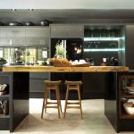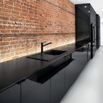 Set dapur berwarna hitam dicirikan oleh bentuk laconic, garis yang jelas dan permukaan yang berkilat. Selalunya ia dihasilkan dalam kombinasi dengan kelengkapan krom, kaca, meja dan sink yang diperbuat daripada keluli tahan karat atau batu buatan. Dapur seperti itu akan sesuai di bahagian dalaman yang berbeza, tetapi yang paling sesuai dengan gaya minimalis, avant-garde, teknologi tinggi atau art deco kerana teknikal dan perindustrian mereka.