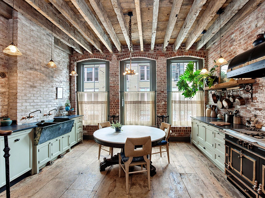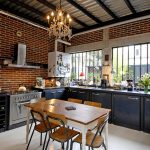 - Apron yang terbuat dari jubin hitam di dapur, terbuat dari batu bata dengan impregnasi khas, tidak takut perubahan kelembapan dan suhu, jadi ia akan kelihatan hebat di bahagian dalam gaya apa pun dan digabungkan dengan fasad yang berbeza.