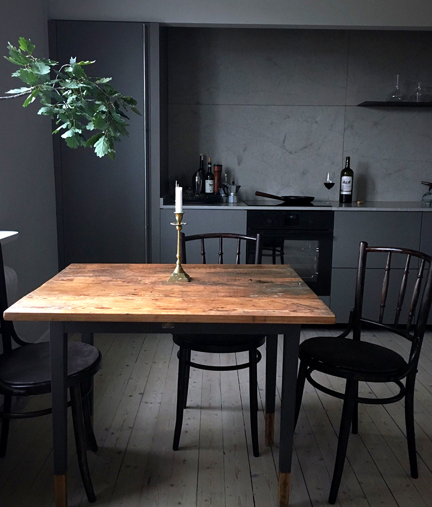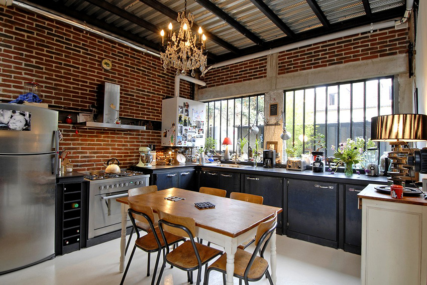 Dapur dengan meja hitam: perincian dapur serba boleh