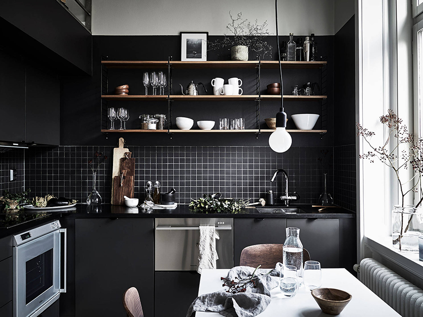 Hiasan dapur berwarna hitam: foto pilihan win-win