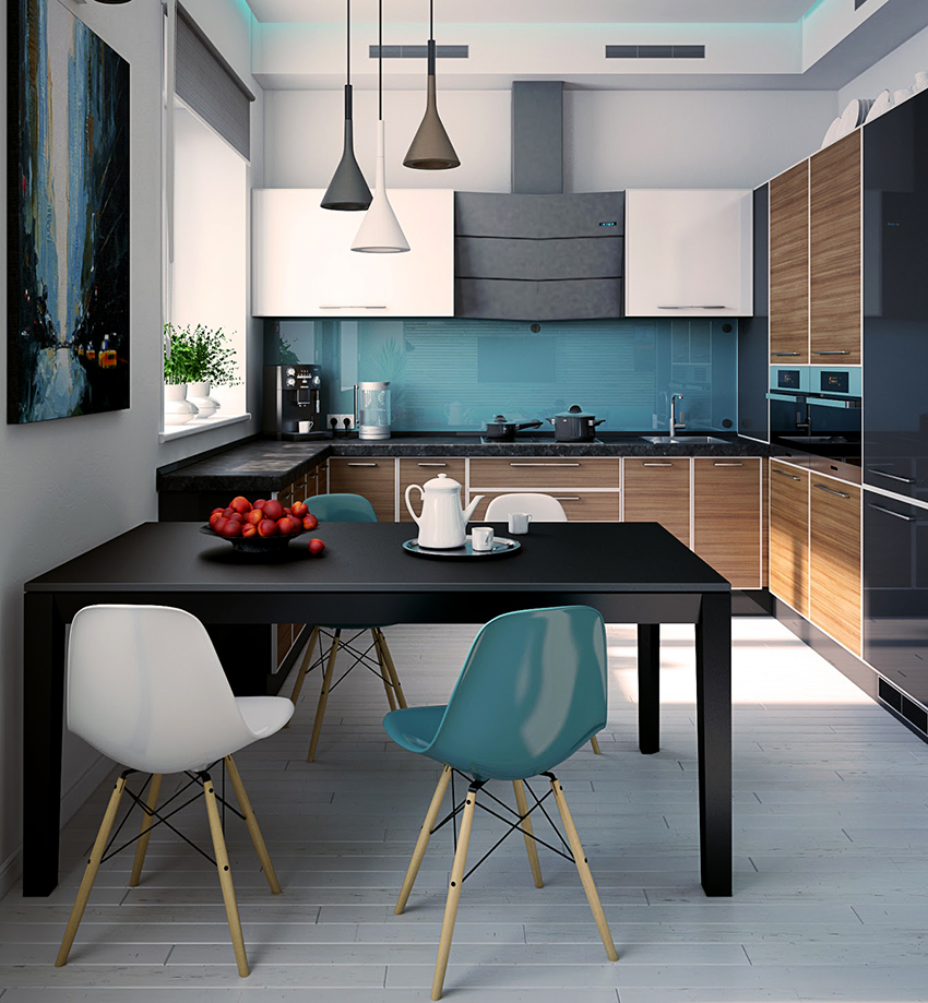 Oleh itu, kerana fleksibilitasnya, warna hitam sesuai dengan warna yang berbeza, tetapi penting untuk menjaga keseimbangan, rasa proporsi, dengan mempertimbangkan ukuran bilik dan kehadiran cahaya siang. Berhati-hati untuk menggabungkan warna hitam dengan nada gelap di dapur kecil dengan pencahayaan yang buruk.