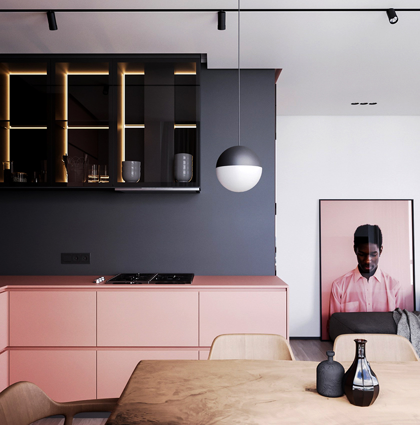 Warna hitam dalam reka bentuk pakaian selalu mempersonakan kesungguhan, keanggunan dan rasa halus. Contohnya ialah jaket lelaki klasik dan gaun sarung hitam kecil abadi dari Coco Chanel yang tiada tandingannya. Pada masa yang sama, dalam reka bentuk dalaman, pendekatan untuk warna hitam jauh berbeza. Di sini, kesalahan minimum dalam keseimbangan warna dapat menyebabkan kenyataan bahawa kegelapan akademik akan berubah menjadi sumber suasana hati yang tertindas dengan suasana yang menindas, dan di dapur itulah yang harus dikuasai oleh keselesaan dan kesenangan.