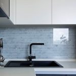 - Skinalis sangat biasa di bahagian dalaman moden, ia mudah dibersihkan dan menawarkan banyak kreativiti di bahagian dalam dapur. Model yang menggambarkan bandar pada waktu malam sangat popular.