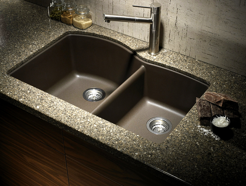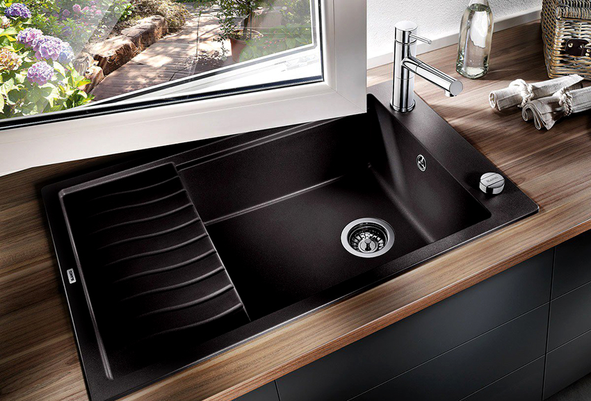 Singki biasa yang diperbuat daripada keluli tahan karat atau keluli tergalvani di dapur moden kelihatan biasa dan sopan. Wastafel hitam, tanpa mengira gaya, boleh kelihatan canggih dan asli, tetapi ciri utama produk dengan warna ini adalah serba boleh. Anda boleh memasang sink hitam di dapur mana pun (klasik, moden, minimalis atau berteknologi tinggi). Pada masa yang sama, ia akan berjaya melengkapkan kawasan kerja tanpa menarik perhatian kepada dirinya sendiri.