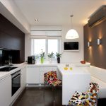 - Adalah mungkin untuk membuat pangsapuri mewah di dapur dengan pelbagai saiz di bawah syarat pendekatan yang kompeten untuk merancang dan membuat banyak cahaya di dalam bilik.