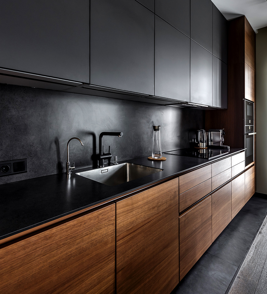 Kekhususan dapur hitam di pedalaman: contoh foto pilihan eksklusif