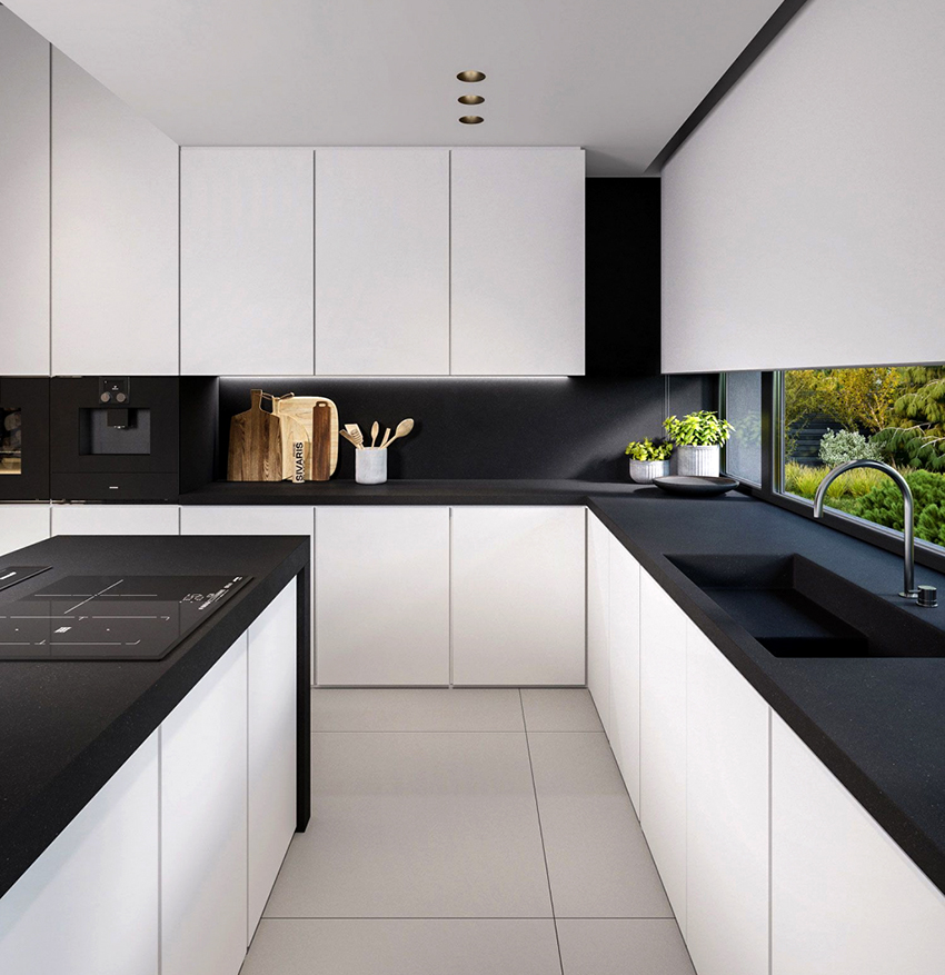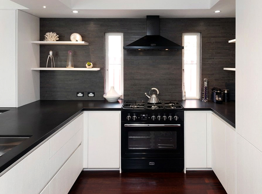 Ciri-ciri membuat reka bentuk dapur dalam warna hitam dan putih