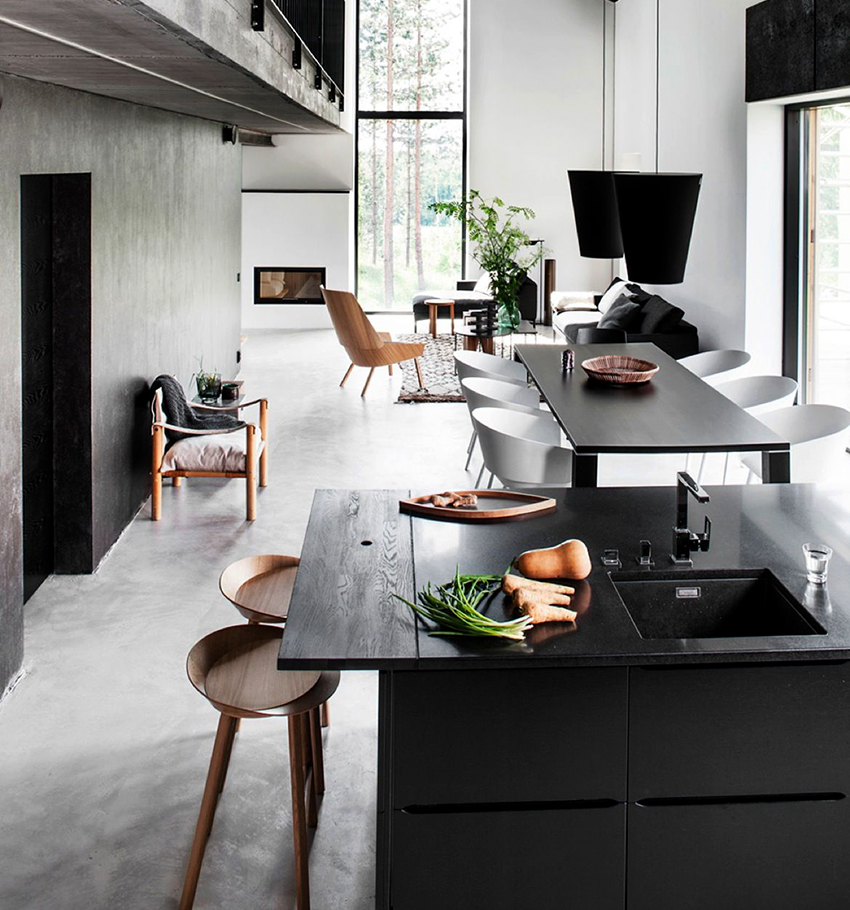 - Perabot dalam warna hitam sangat sesuai untuk mereka yang menyukai penyelesaian dan kontras yang berani.