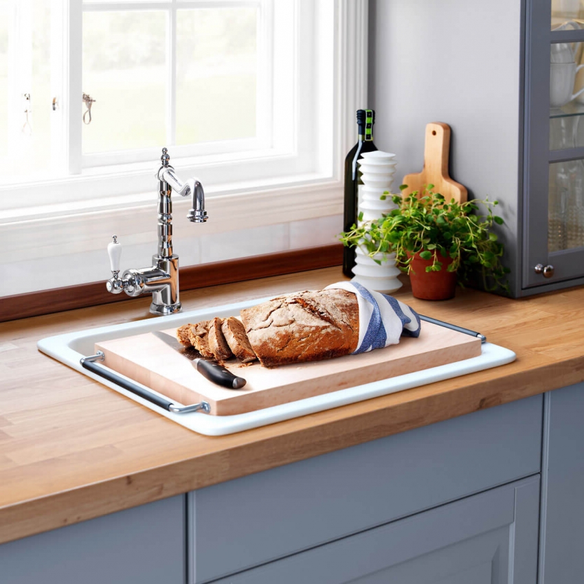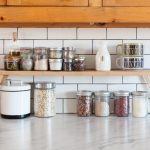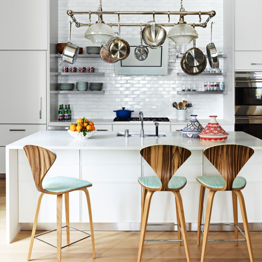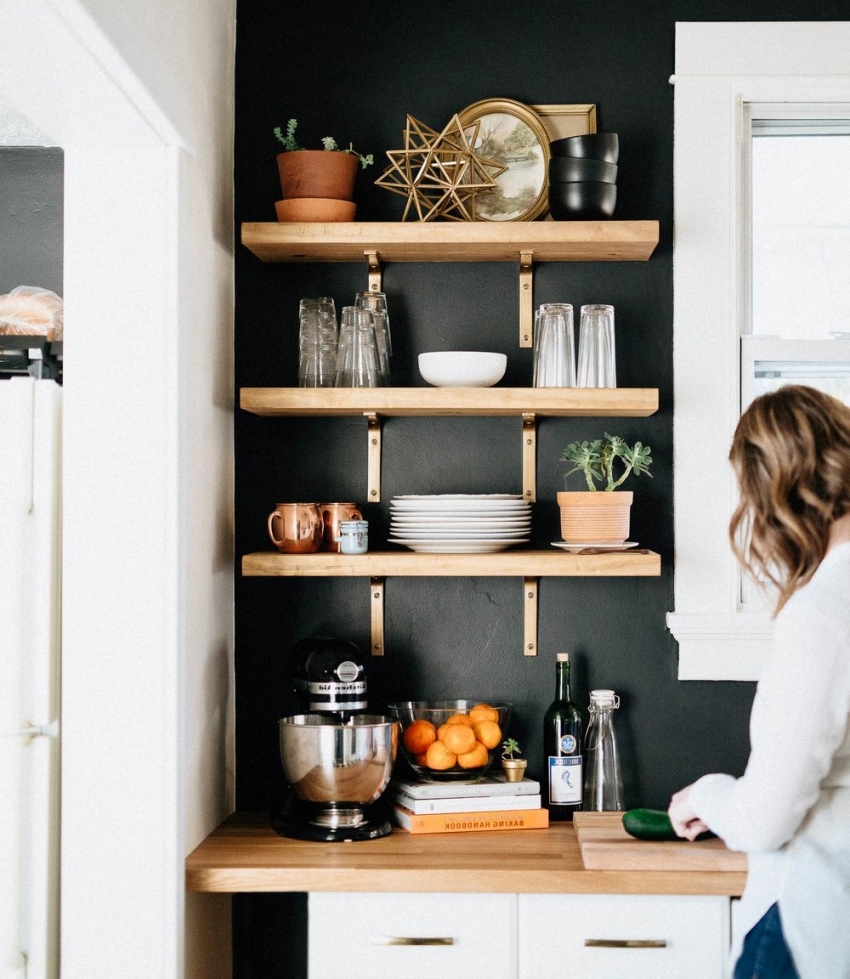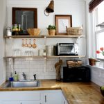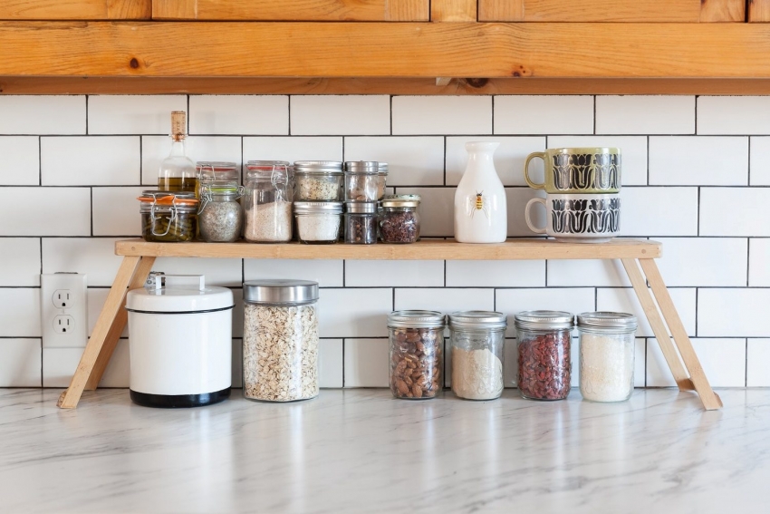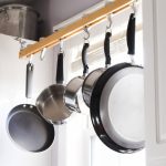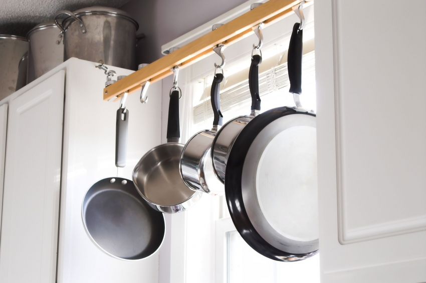 Ruang simpanan tambahan di dapur kecil dapat disediakan dengan memasang periuk dan periuk panci di atas meja kerja