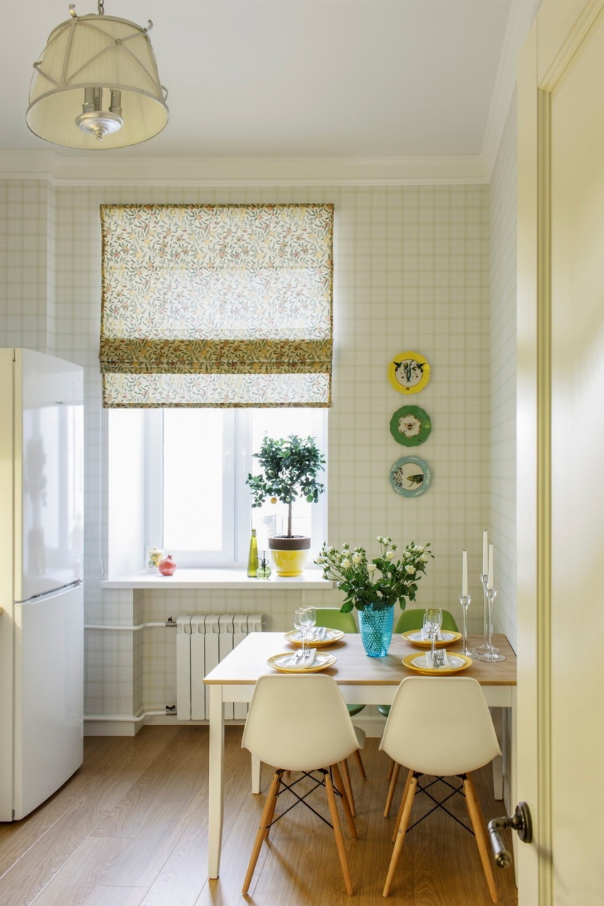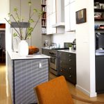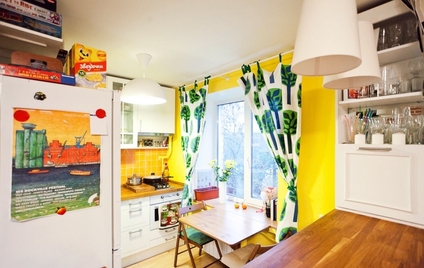 Dengan ruang dapur yang kecil, beberapa benda atau perkakas dapat dibawa ke bilik lain, misalnya, peti sejuk - ke koridor, dan ruang makan dapat digabungkan sebagian dengan loggia