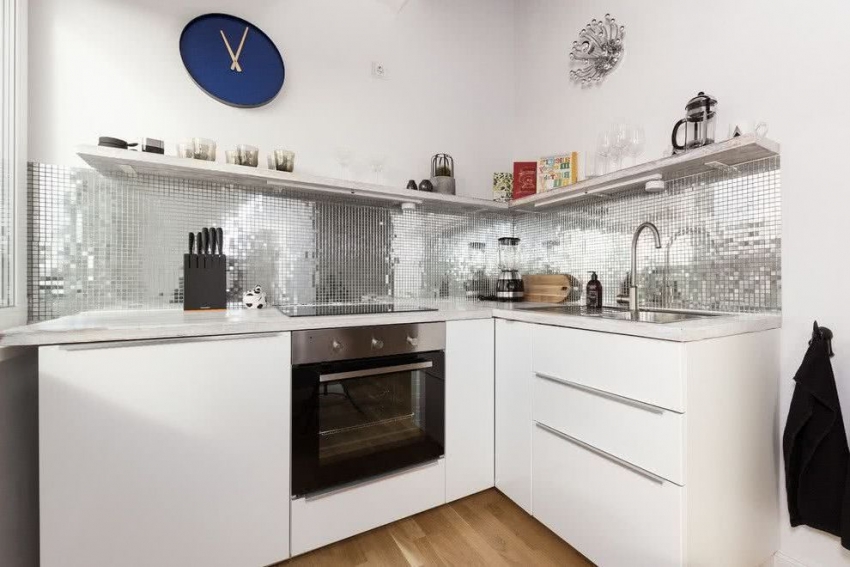 Untuk dapur kecil di gaya moden penyelesaian yang baik adalah memilih perabot logam berkilat