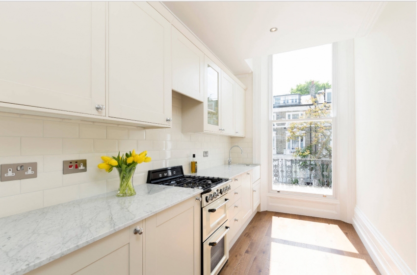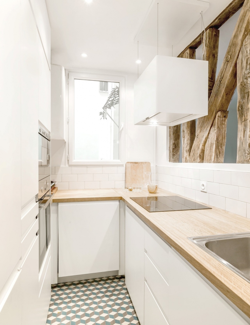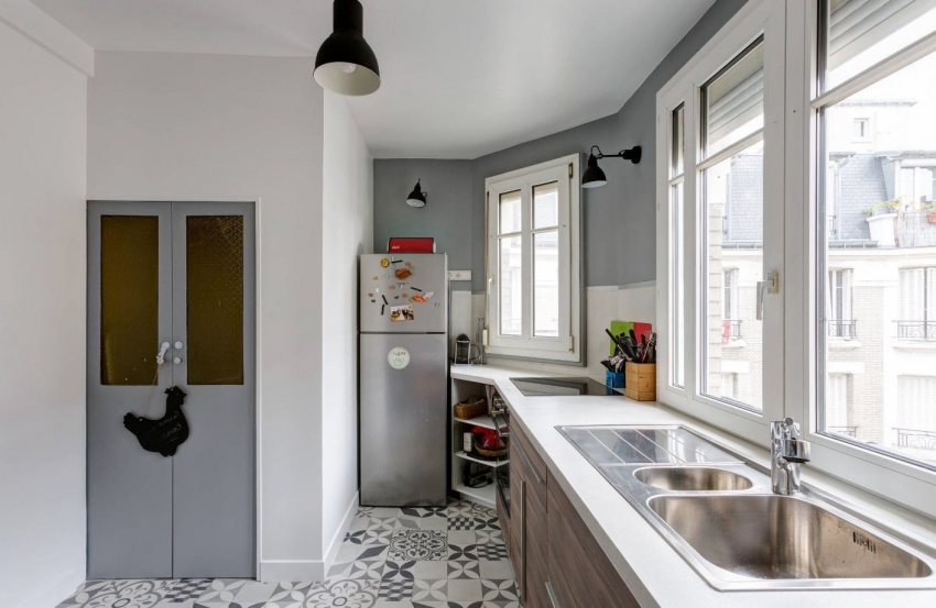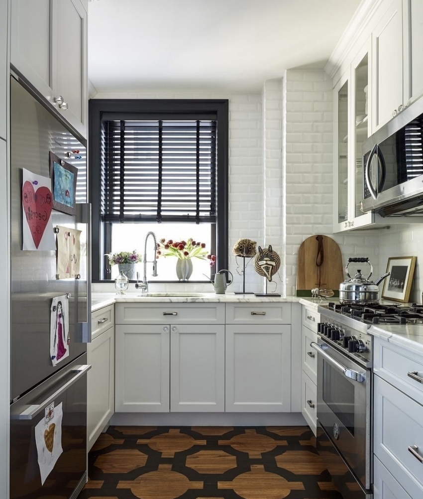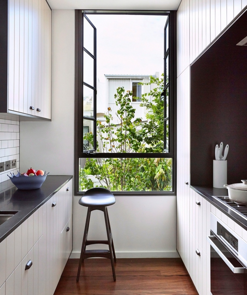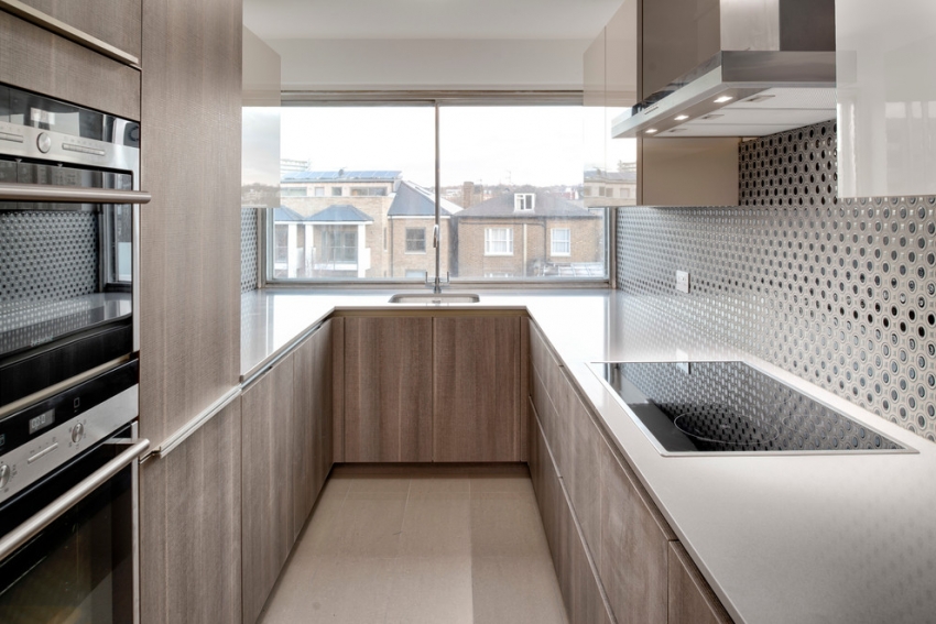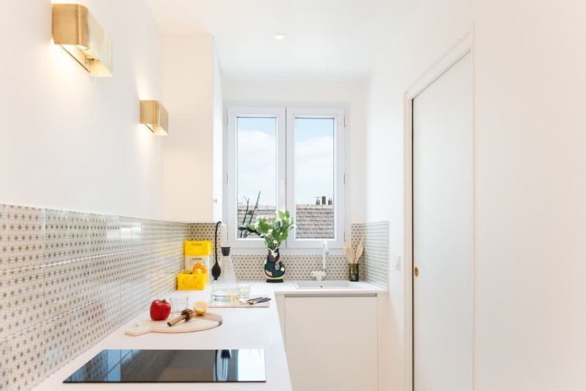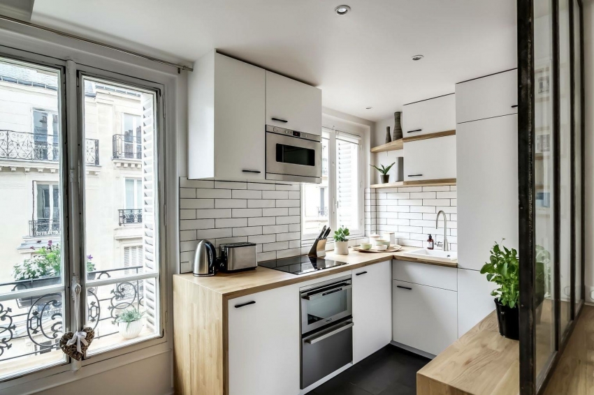 Dengan meletakkan permukaan kerja dan bukannya tingkap, anda boleh menambah kawasan yang boleh digunakan di dapur kecil