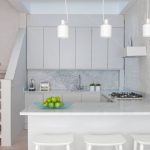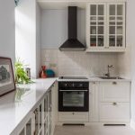 By the way, reka bentuk dapur putih 6 meter adalah salah satu penyelesaian paling bergaya hari ini. Terutama jika anda menggunakan kabinet kaca ringan sebagai tambahan.