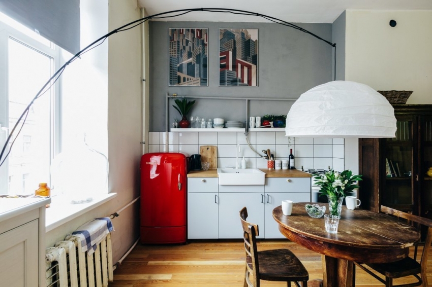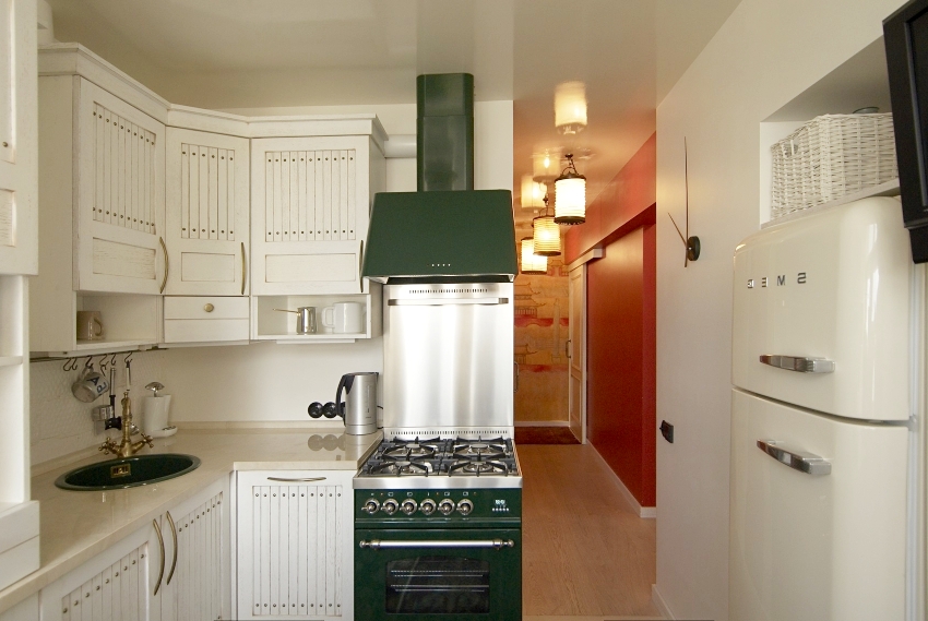 - untuk mengosongkan ruang di dapur, peti sejuk boleh dipindahkan ke lorong, koridor, atau ke loggia, walaupun pilihan ini hanya sesuai jika anda tidak memasak terlalu kerap;
