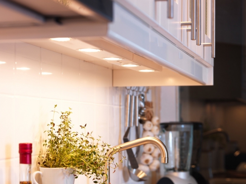 Semasa memilih unit dapur, anda seharusnya tidak memperhatikan kemungkinan memasang lampu LED tambahan di bawah kabinet