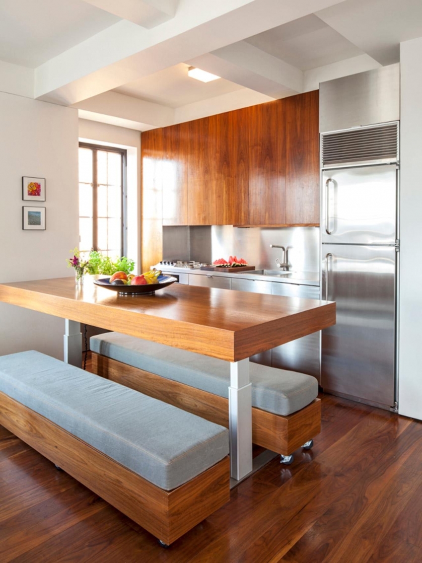 Perabot mudah alih sangat selesa di dapur kecil, kerana ia membolehkan anda menggunakannya di tempat yang diperlukan