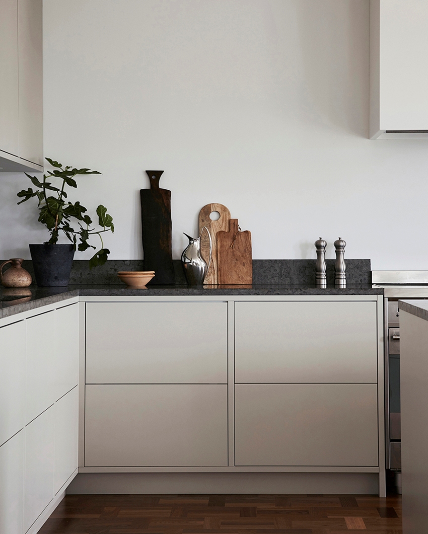 Dapur berteknologi tinggi mengandaikan bilangan aksen dan aksesori warna minimum
