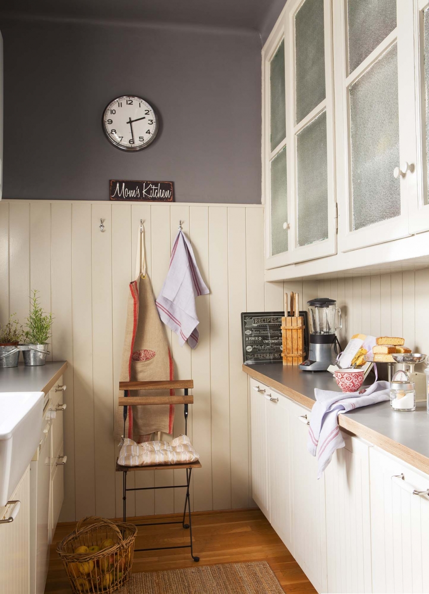 Nasihat berguna! Teknik lain yang membolehkan anda menjimatkan, walaupun ruang dapur kecil yang berguna tetapi sangat penting, adalah menggabungkan perabot dengan meja kerja yang kukuh.