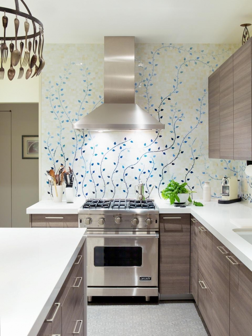 - untuk apron dapur, lebih baik menggunakan mozek kecil, yang akan kelihatan bergaya dan padat pada masa yang sama;